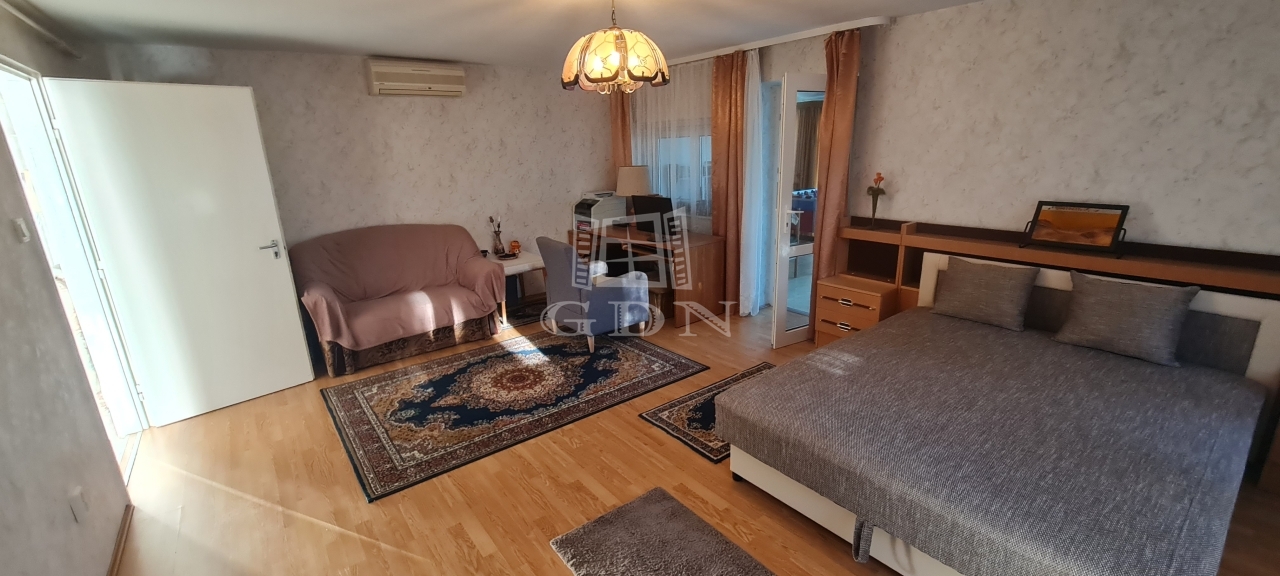 - Az emelet egy tágas nappaliból, három hálószobából, konyha-étkezőből, fürdőszobából, Wc-ből és két erkélyből áll