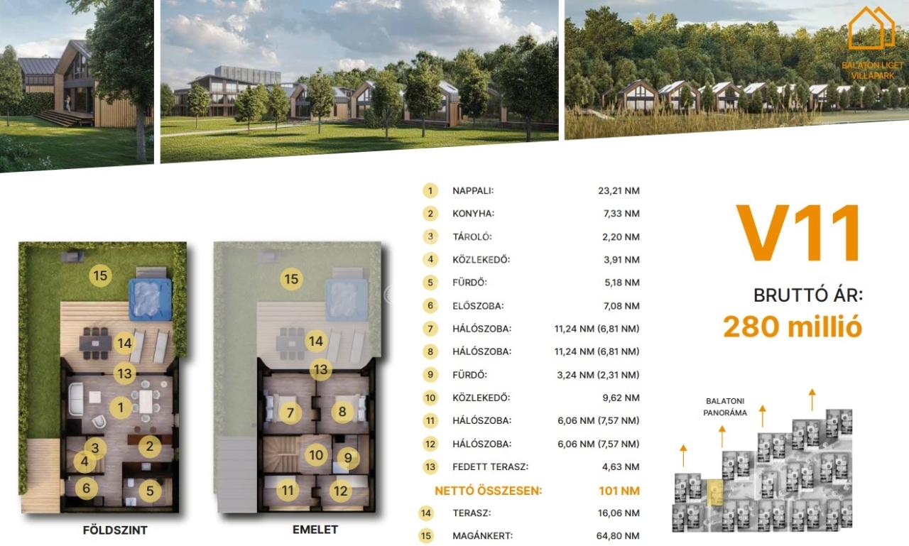 min. 47 m² magánkert.