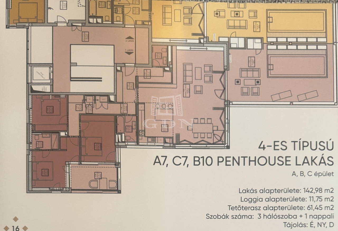 Az C/4-es típusú első emeleti lakás 115,91 négyzetméteres, tartozik hozzá 2 loggia amelyek alapterülete 24,75 négyzetméter. A 115,91 négyzetméteren amerikai konyha, 3 hálószoba, nappali, gardróbszoba, 2 fürdőszoba, valamint vendég WC is található. A loggián napozhat vagy akár egy jakuzzit is telepíthet. Az ingatlanhoz mélygarázsok és tárolok is megvásárolhatóak.