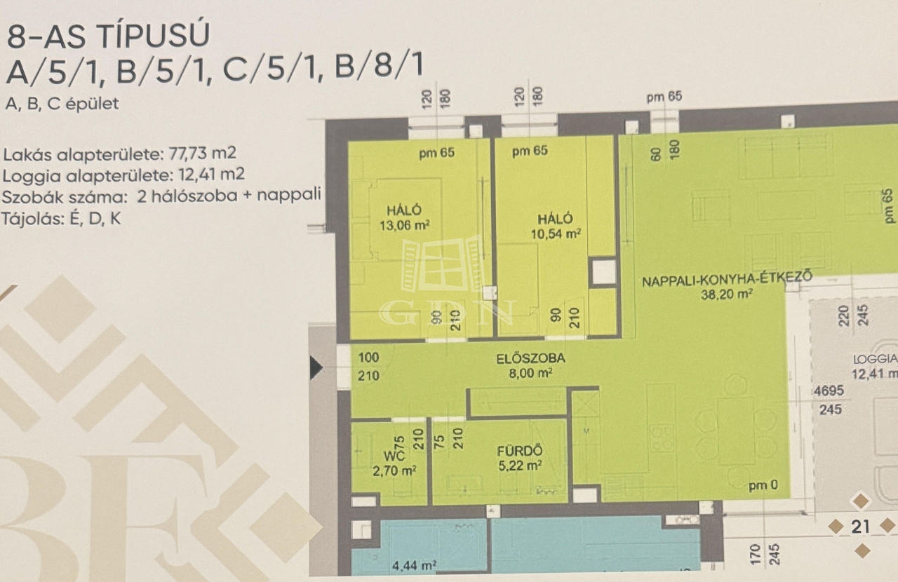 Az A/5/1-es típusú első emeleti osztott lakás 77,73 négyzetméteres, tartozik hozzá loggia amely alapterülete 12,41 négyzetméter. A 77,73 négyzetméteren amerikai konyha, 2 hálószoba, nappali, fürdőszoba, valamint külön WC is található. A loggián napozhat vagy akár egy jakuzzit is telepíthet. Az ingatlanhoz mélygarázsok és tárolok is megvásárolhatóak.