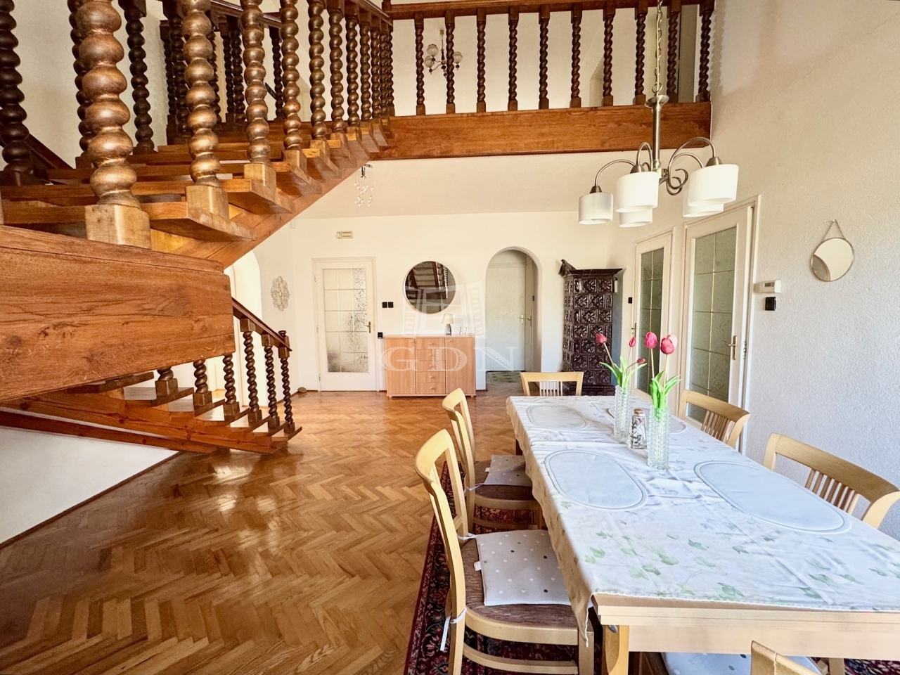 A Balaton északi partjának egyik legszebb városában, Balatonfüreden, kiváló közlekedés és ellátottság mellett, kertvárosi környezetben, 10 perc sétára a vitorlás kikötőtől, és a Tagore sétánytól, 586 m2-es összközműves telken, 1990-ben épült, 190 m2-es lakóterületű, 2 szintes, dupla komfortos, dupla nappalis + 3 hálószobás, a földszinten található nappaliból közvetlen 40 m2 -es teraszkapcsolattal rendelkező, kiváló elosztású, külön nyíló szobás, napos-világos, K-NY-i tájolású, alacsony fenntartású, kombinált gázcirkó és cserépkályha fűtésű, jó állapotú, 2018-ban új thermo ablakokra cserélt, klimatizált, riasztórendszerrel felszerelt családi ház, beépített, gépesített konyhával, nagyméretű tárolóval, garázzsal, úszómedencével, rendezett kerttel, rugalmas költözéssel eladó.