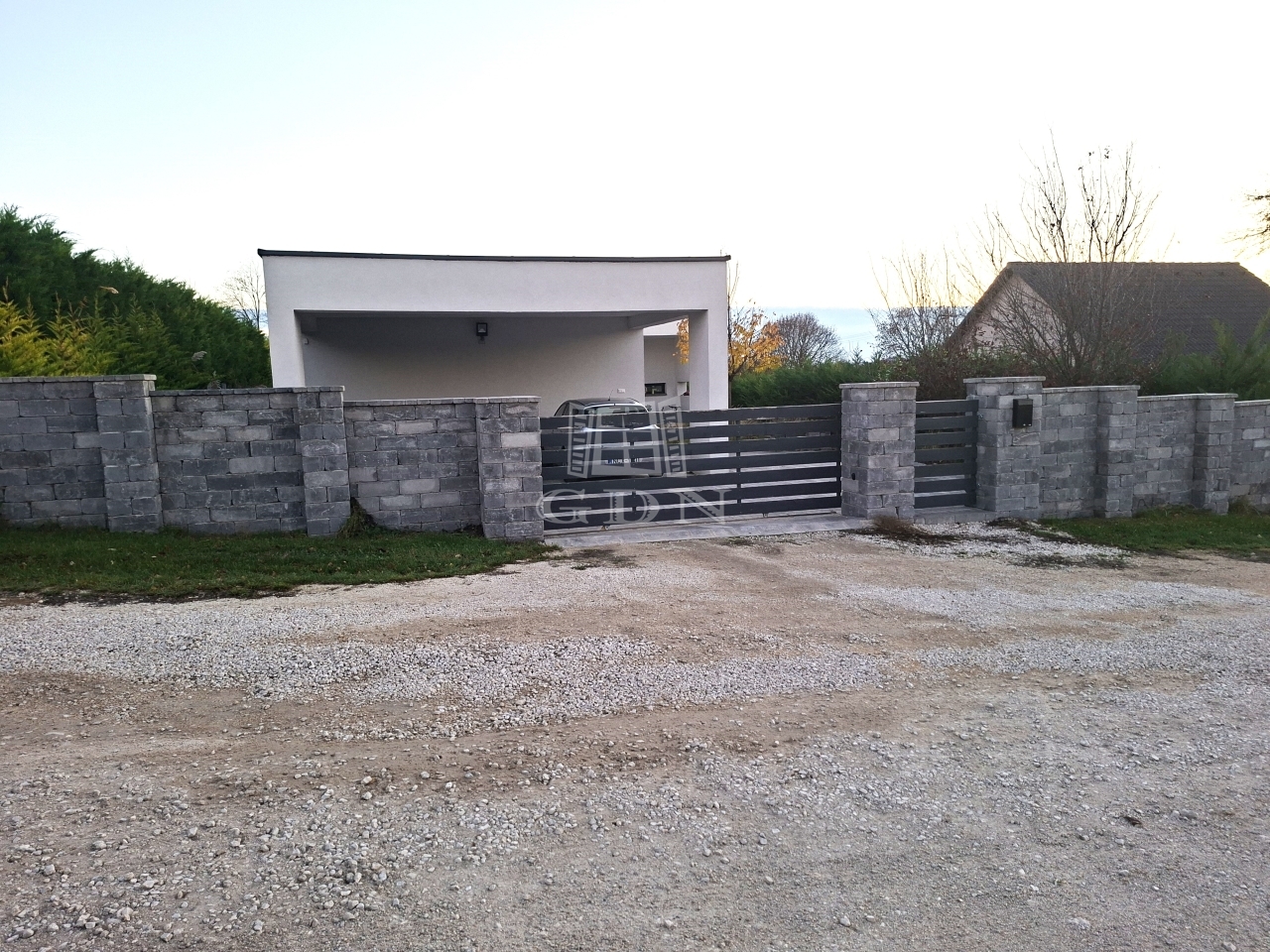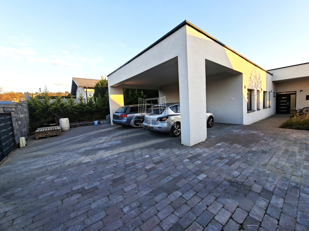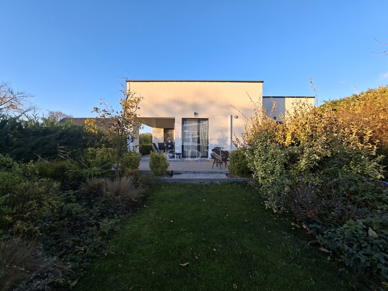 Balatonfűzfő kedvelt Fűzfőfürdő városrészében, a Balatontól mindössze 1500 méterre, Veszprémtől 15 km-re, az M7-es autópályától pedig kényelmes, 20 perces autóútra található ez a modern technológiával épült, lapostetős családi ház.