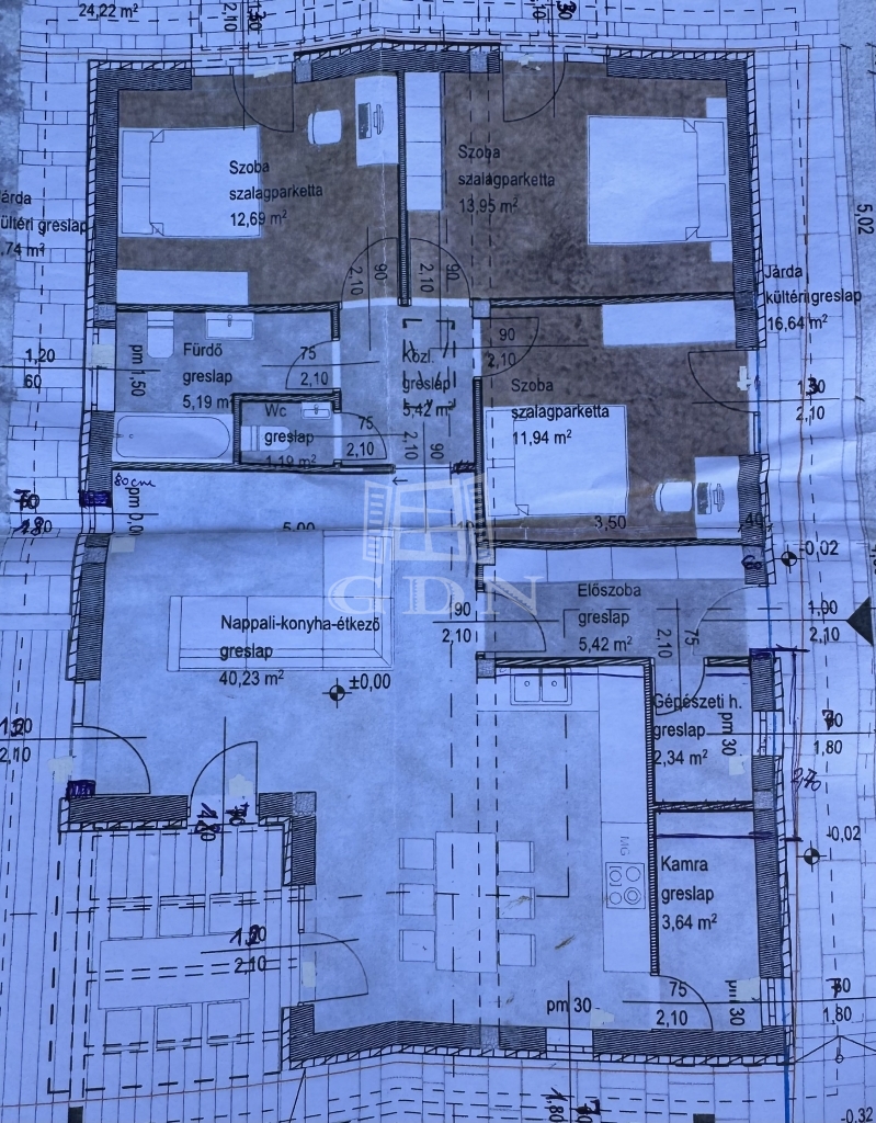 - beton alap, aljzat és víz szigeteléssel