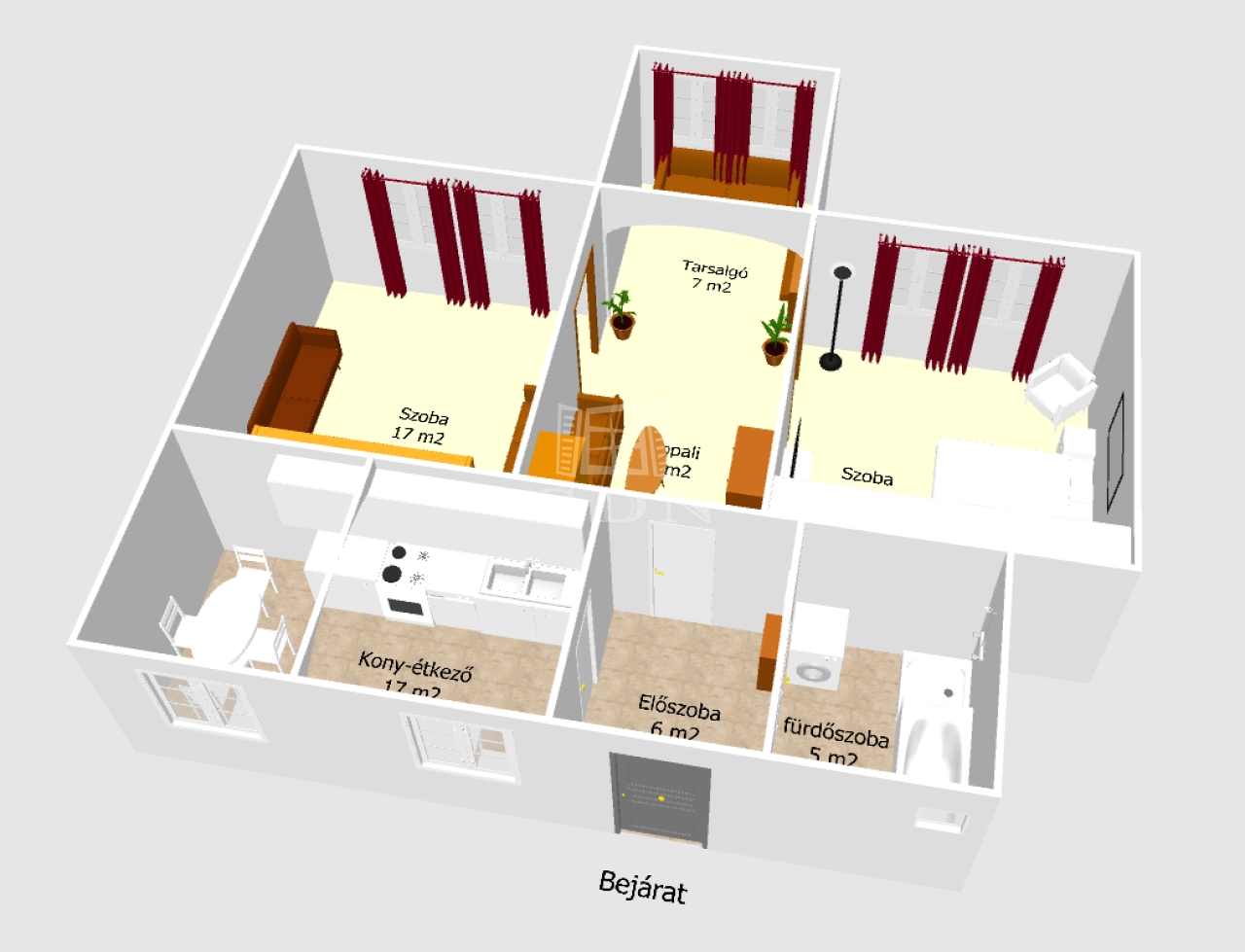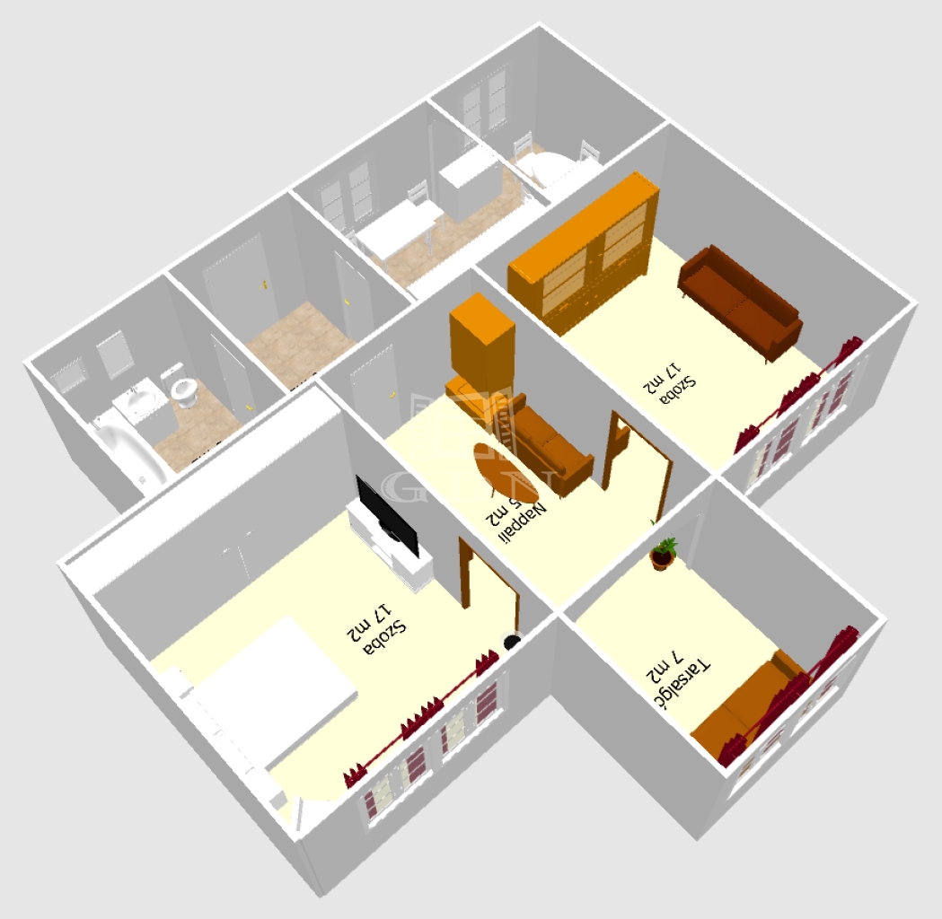 - 1 szoba, konyha-étkező, fürdőszoba-WC