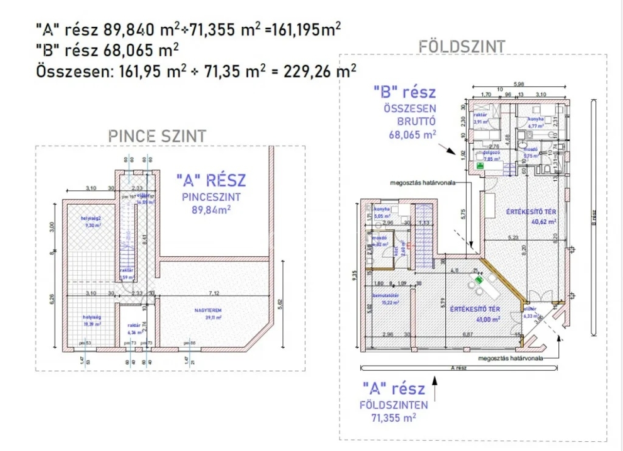 Az alaprajzon az "A" terület érintett, megosztási szerződéssel.