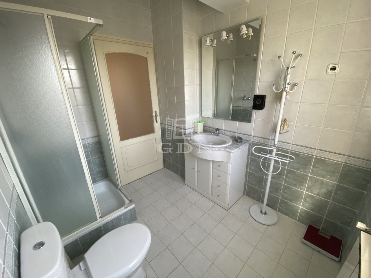 helyiségek, kettő vizesblokk, plafonig csempézett zuhanytál szauna