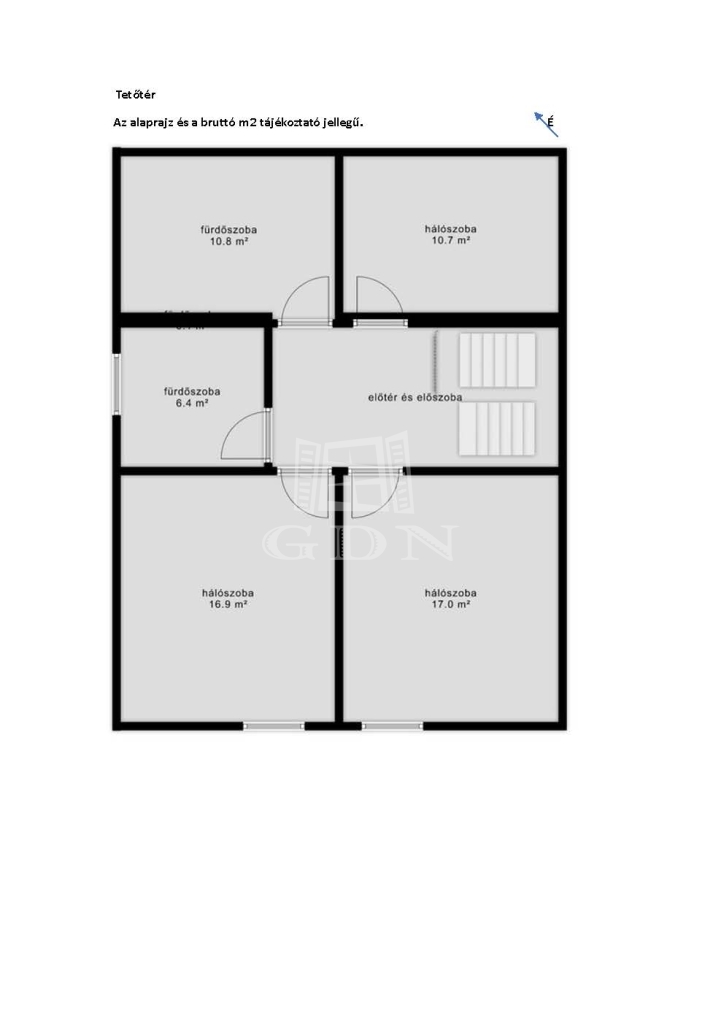 • Tetőtér: három szoba, kettő fürdőszoba (kád, zuhanyzó, bide)