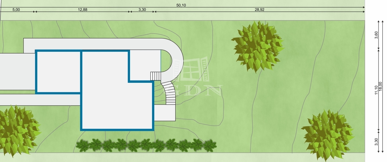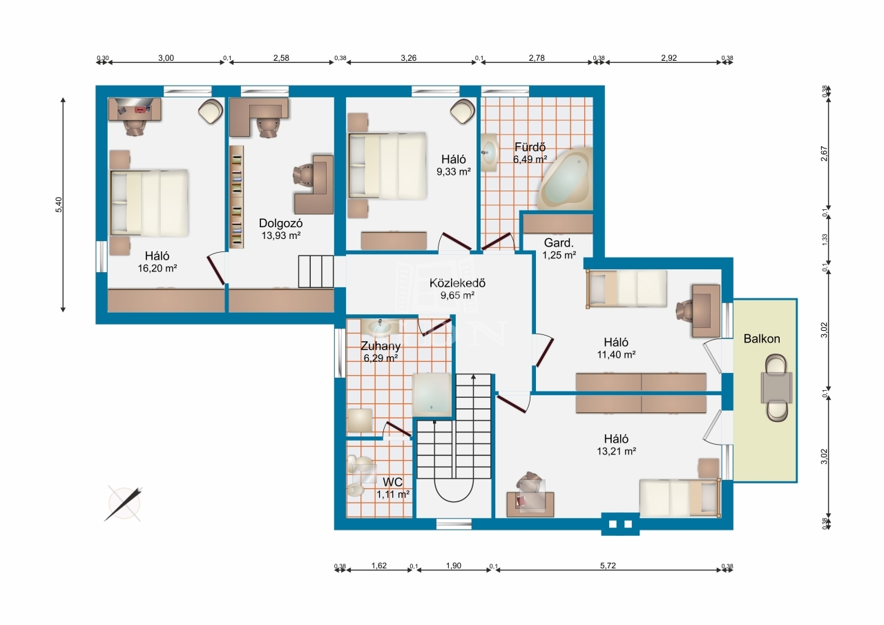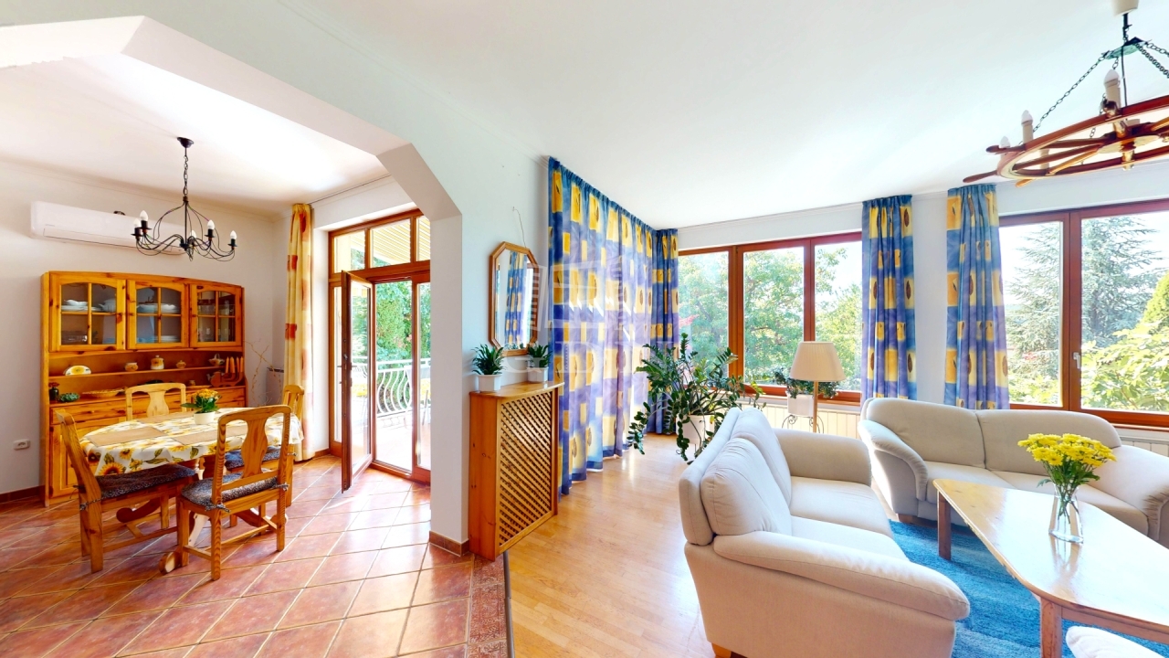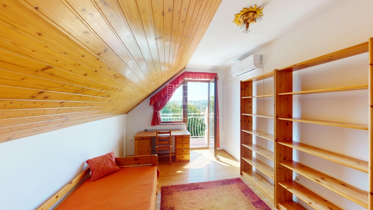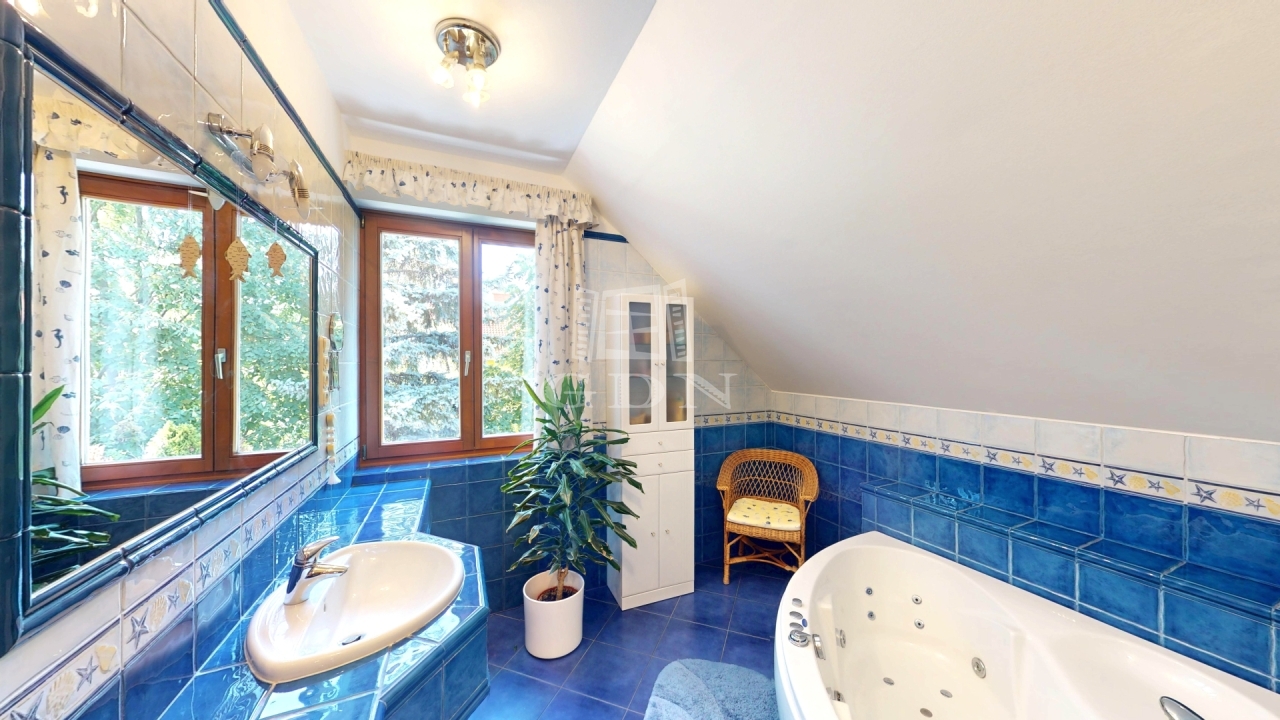 A ház 273 négyzetméteres területen kínál tágas életteret egy 902 négyzetméteres zöldellő kerttel.