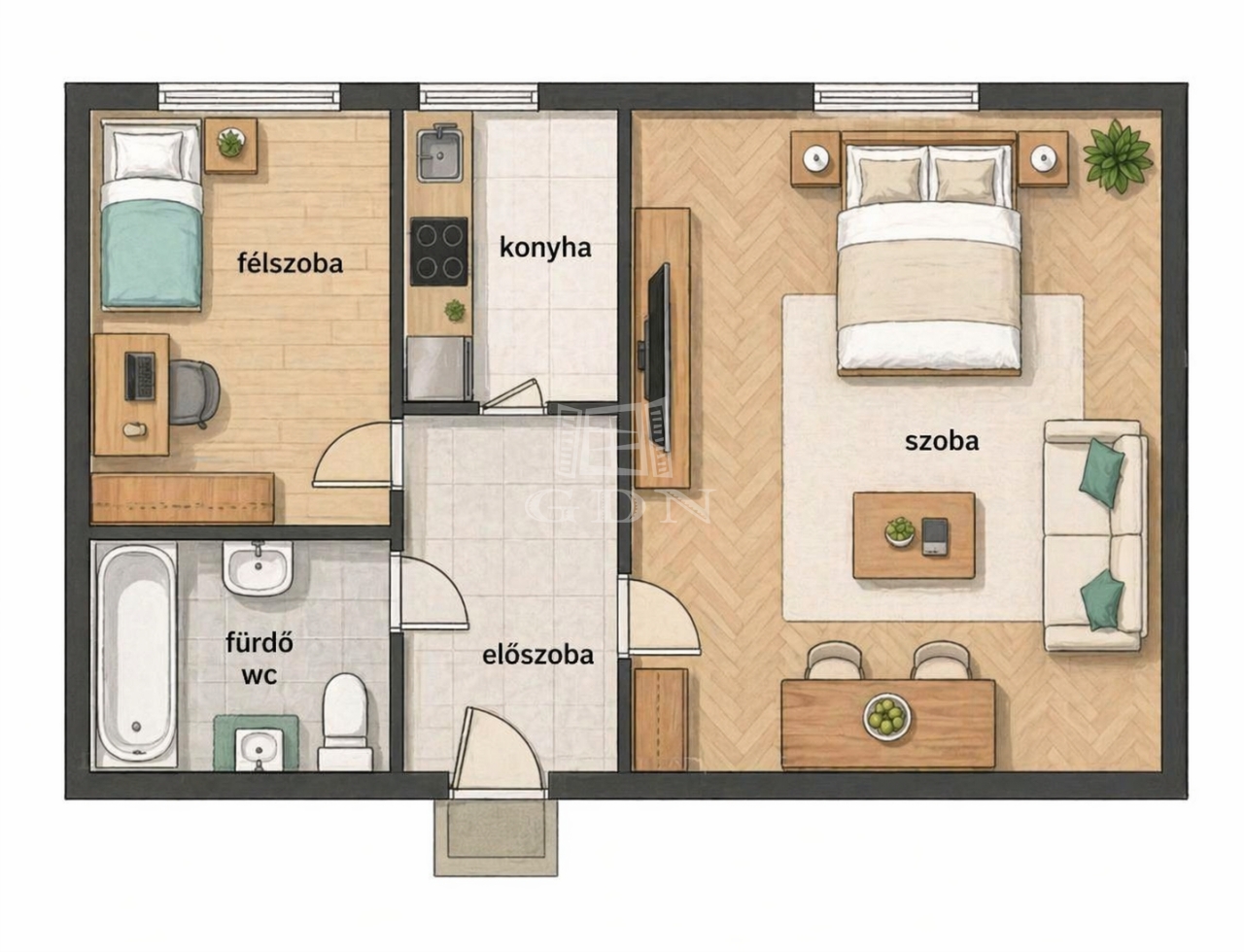 35 m2Alapterület 1 + 1 Szoba