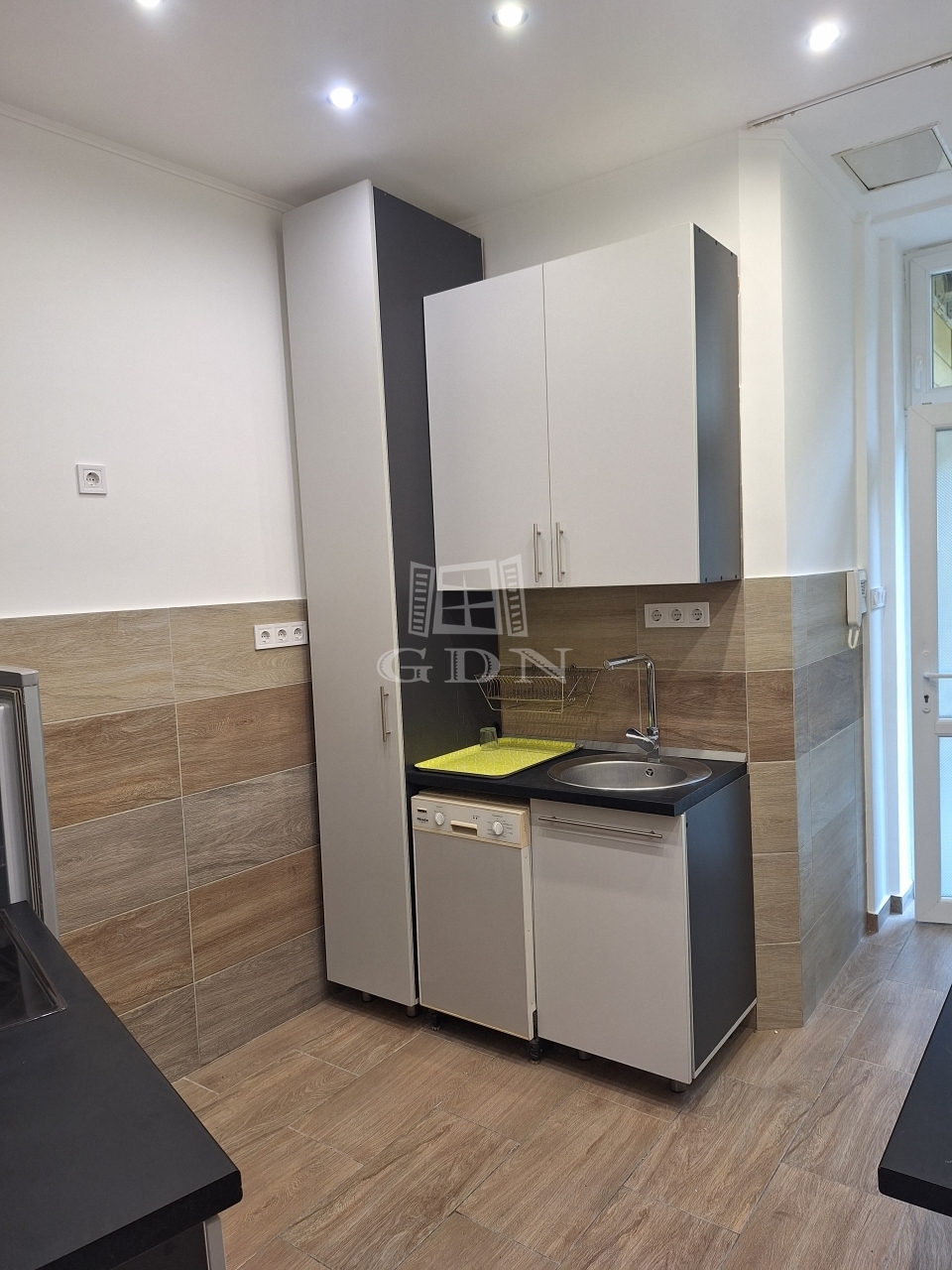 A 58 m²-es lakás tágas, világos, két fürdőszobás, akár két külön bérlő számára is ideális.