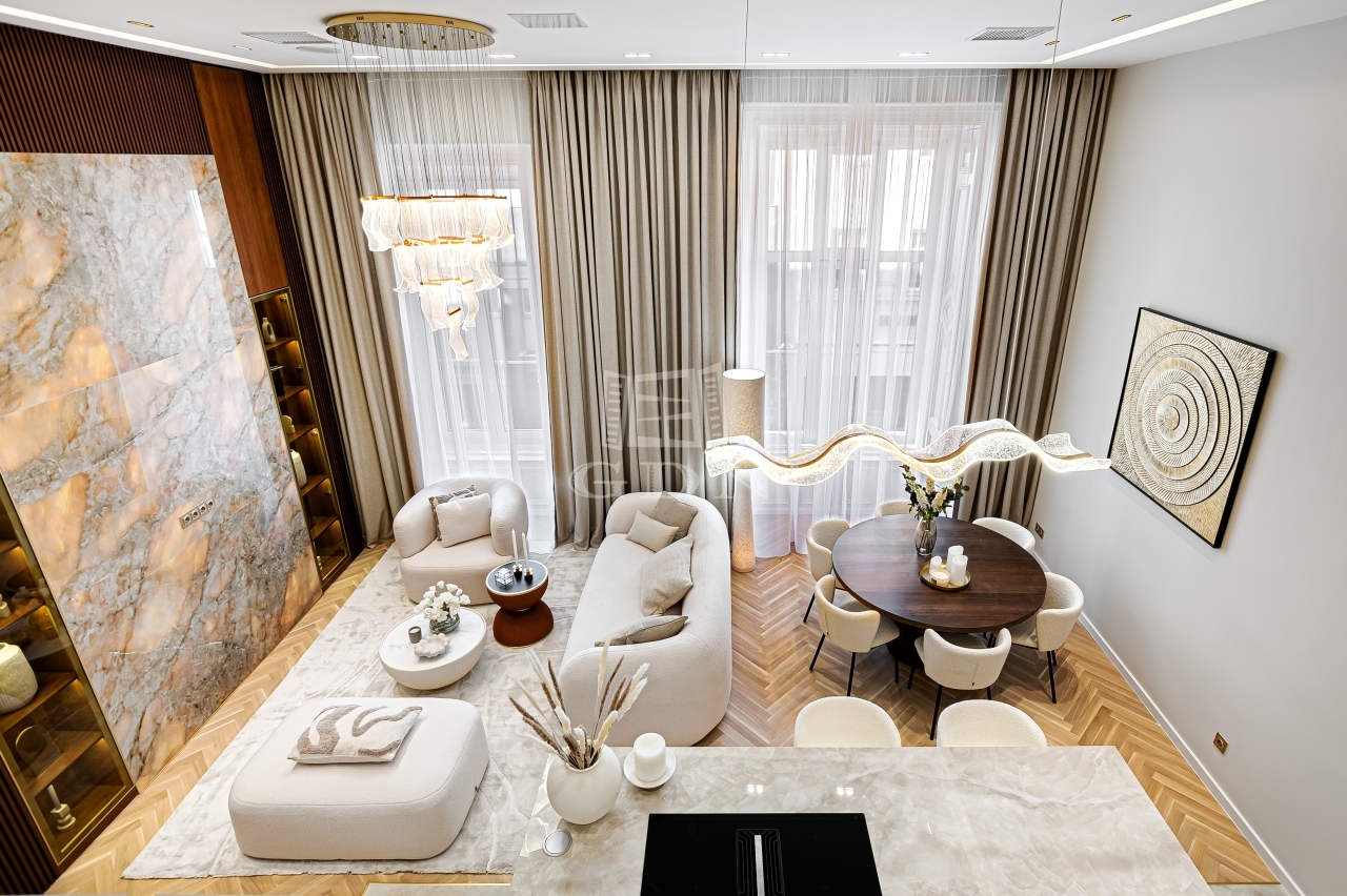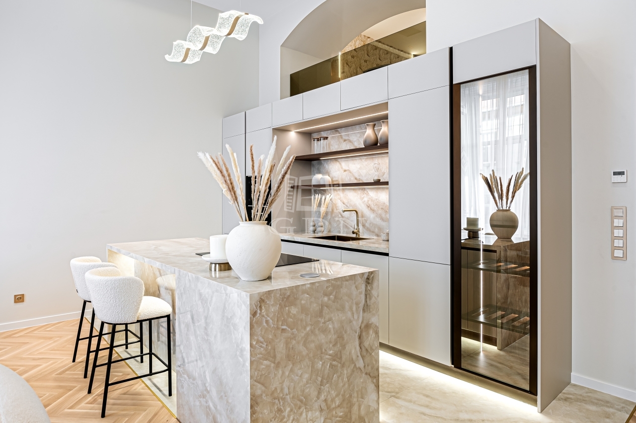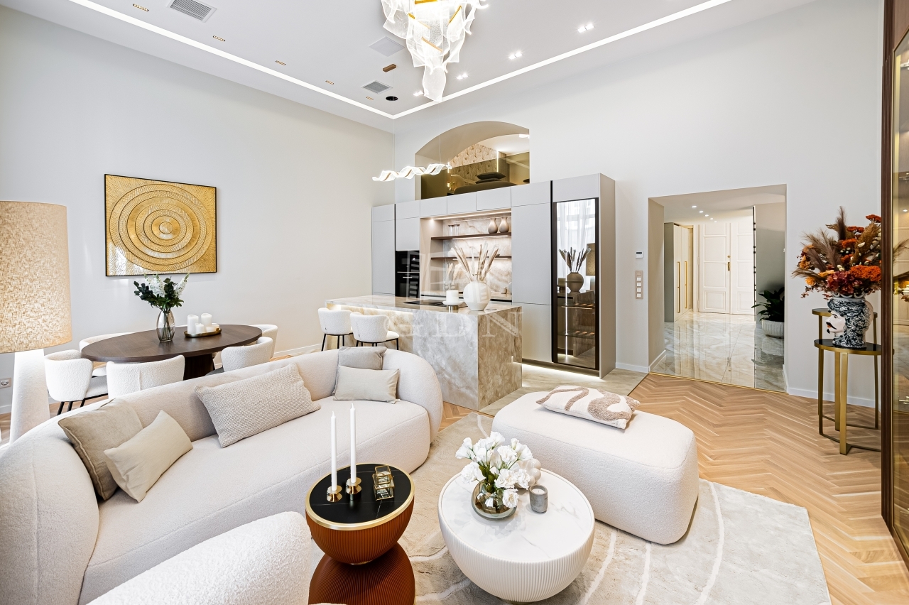 Budapest történelmi központjában, a Szent István Bazilika mellett kínálunk megvételre egy egyedülálló, belső kétszintes luxuslakást, amelyben a nagypolgári stílus és a kortárs design harmonikusan találkozik.
