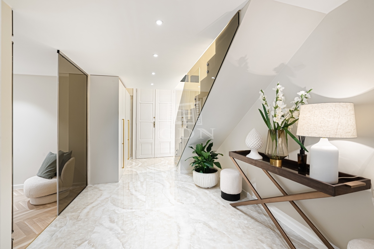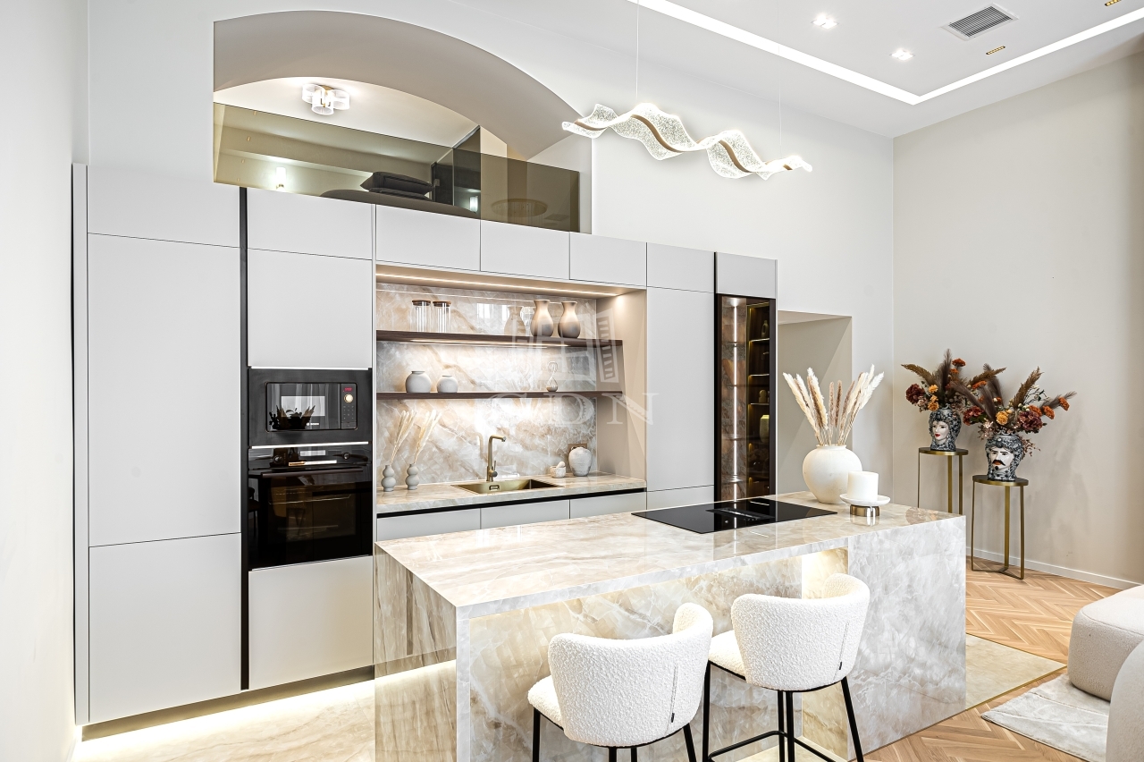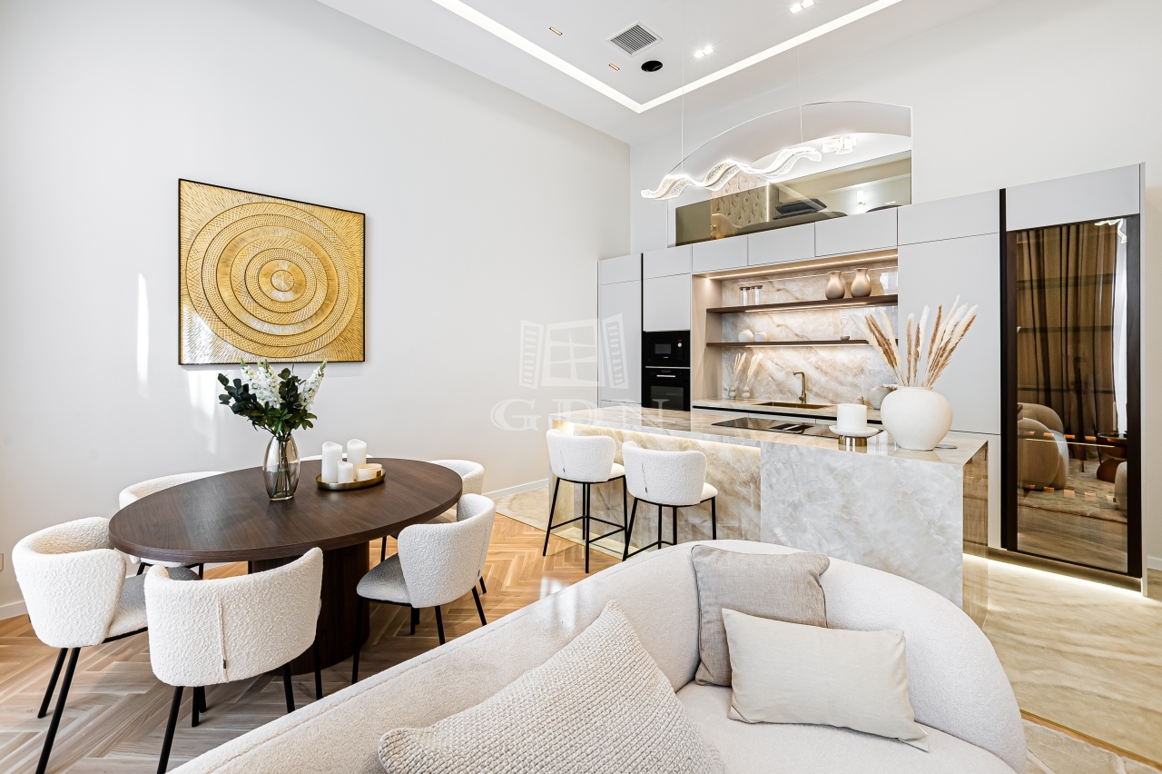 Budapest történelmi központjában, a Szent István Bazilika mellett kínálunk megvételre egy egyedülálló, belső kétszintes luxuslakást, amelyben a nagypolgári stílus és a kortárs design harmonikusan találkozik.