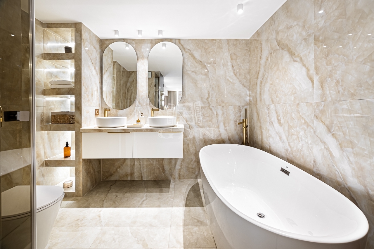 A teljeskörű felújítás során kizárólag prémium anyagokat alkalmaztak: olasz és spanyol design burkolatok, Roberto Cavalli tapéták, különleges díszítő falfelületek, minőségi diófa bútorok, valamint modern hang- és fényrendszer teszi különlegessé az enteriőrt.