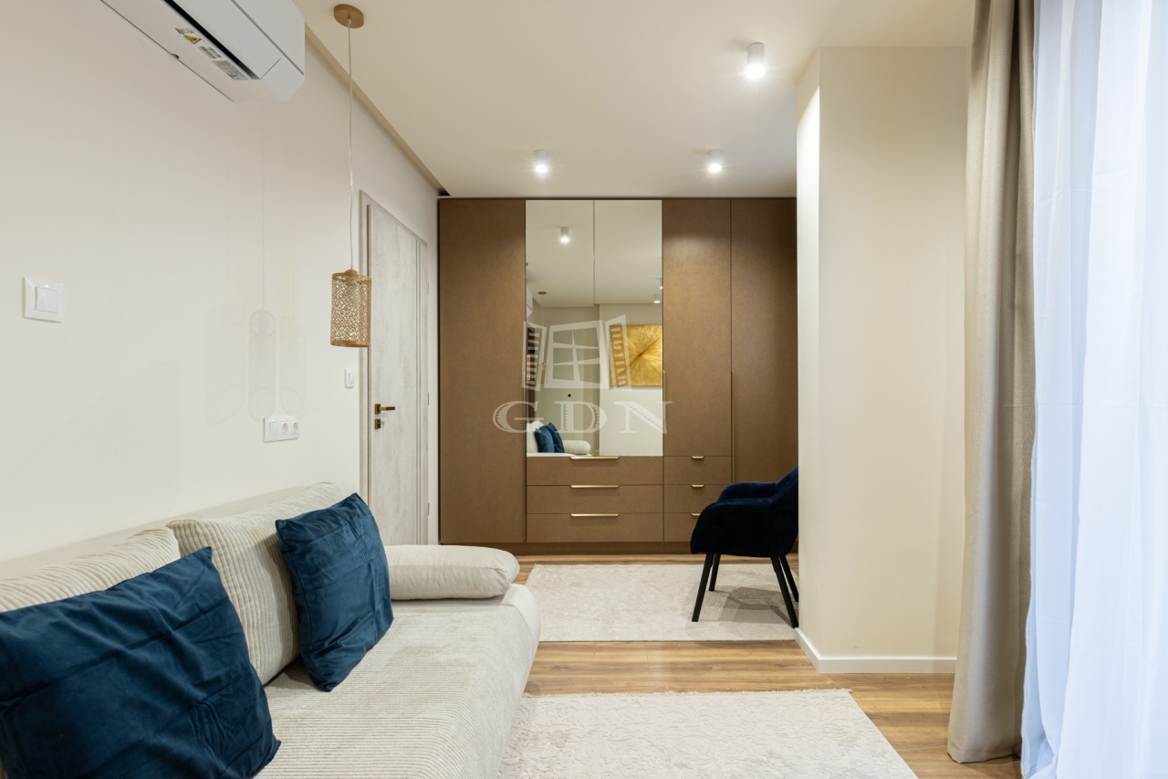 A lakás bútorozott és gépesített, minden helyiség klimatizált, a fűtés pedig házközponti. A fogyasztás egyedi mérőóráknak köszönhetően átlátható és gazdaságos.