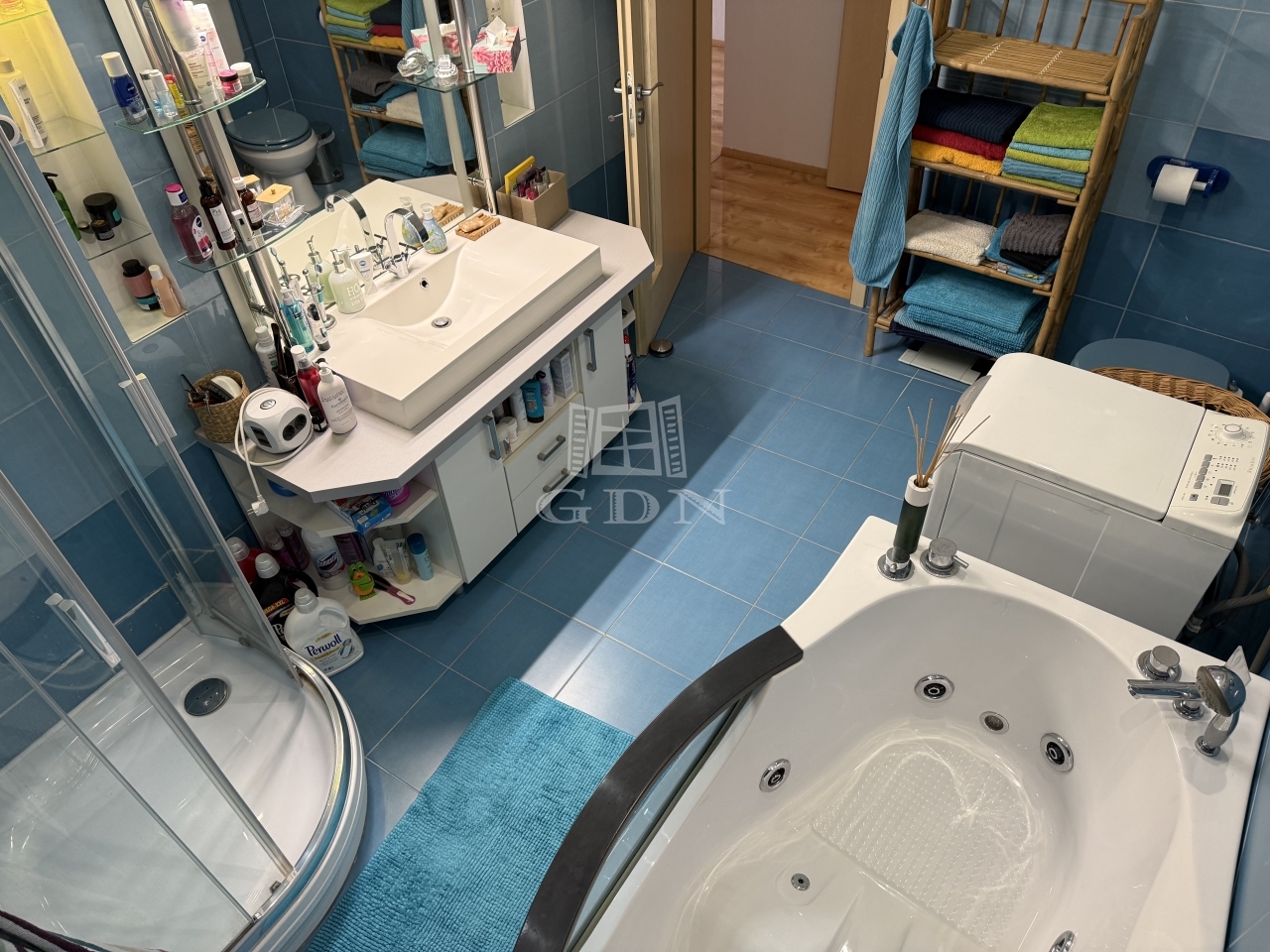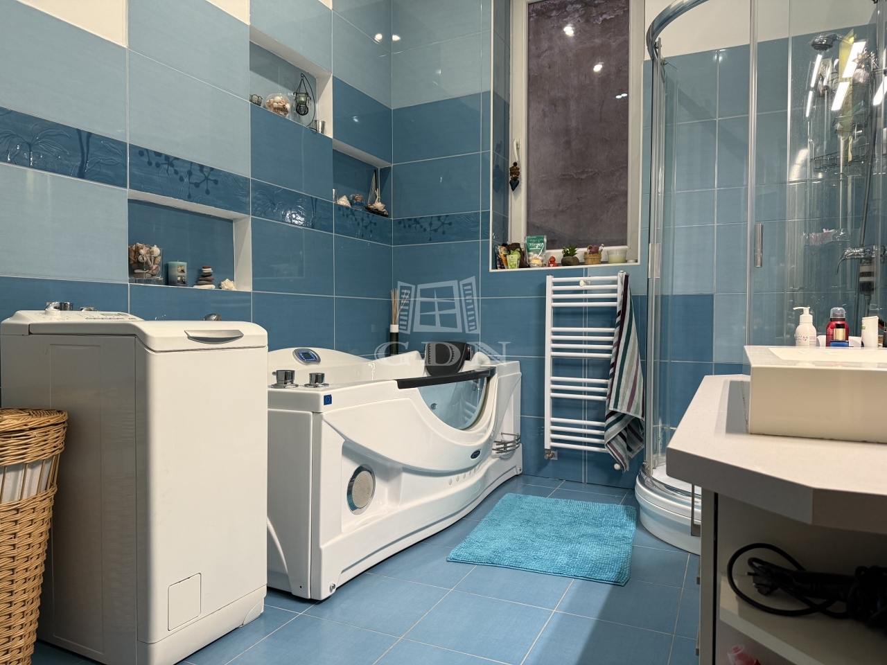 A fürdőszoba igazi luxust kínál, hidromasszázs kád és zuhanykabin is megtalálható benne. A belső tér kiemelkedő belmagassággal rendelkezik, amely a tágasság érzetét növeli.