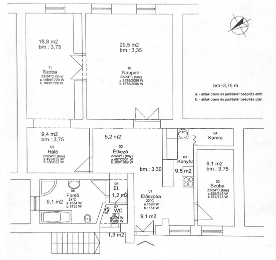 A lakásban minden műszaki és esztétikai felújítás megtörtént: az elektromos és vízvezetékeket, valamint a gázrendszert is kicserélték, emellett a padlóburkolatok és a nyílászárók is frissítésre kerültek. A komfortot egy kondenzációs gázkazán biztosítja, amely radiátorokon és padlófűtéssel egyaránt működik. A hűtésről két inverteres klíma gondoskodik, így a lakás minden évszakban kellemes hőmérsékletet biztosít.