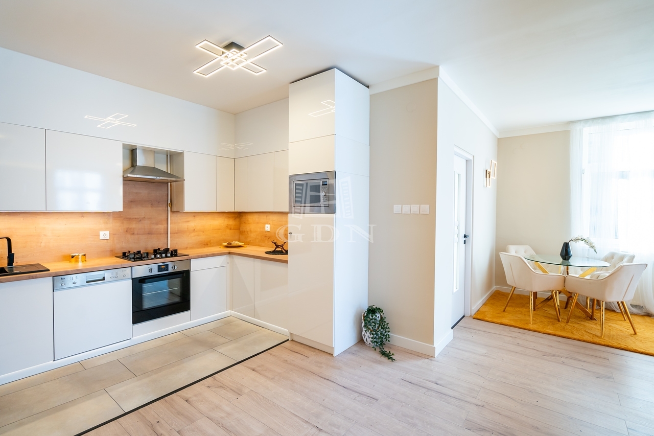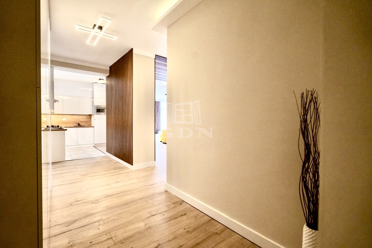 Ahogy belépünk az ajtón egy egyedi designnal és letisztult színvilággal rendelkező amerikai konyhás nappali nyílik bal oldal felől és egy belső vendégszoba. A bejárati ajtótól jobbra pedig a két fürdőszoba található és egy exkluzív hálószoba egy hatalmas franciaággyal és bútorokkal illetve mellette egy gyerekszoba.