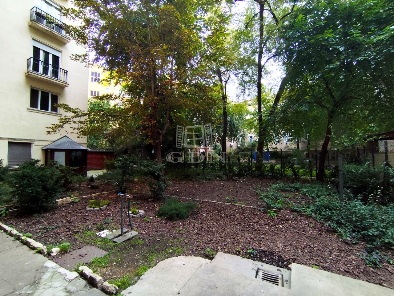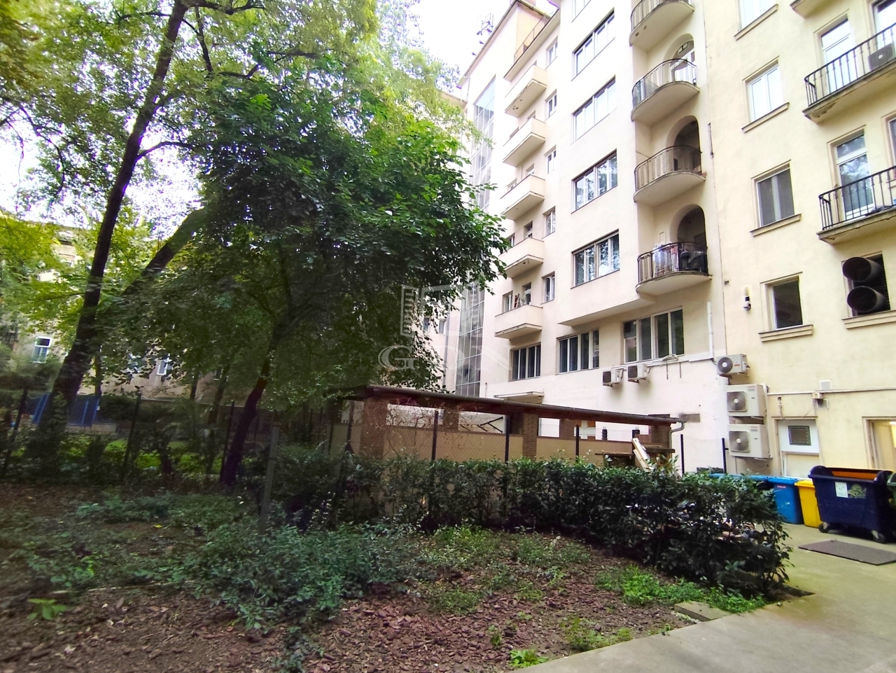 A lakás Budapest szívében található, mégis meglepően csendes és nyugodt, kertre néző ablakokkal.