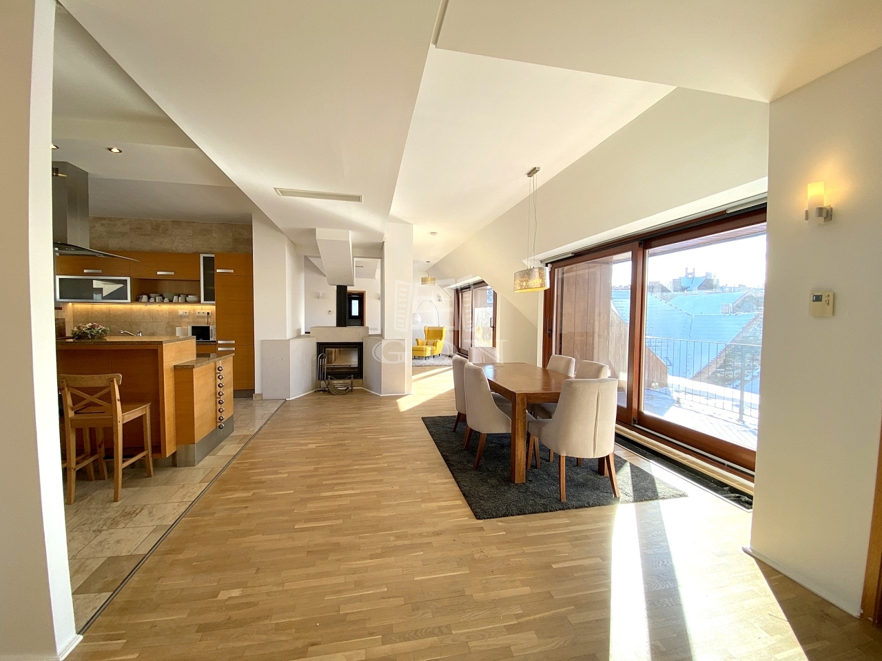 Tágasság, hatalmas üvegfelületek, közel 3 méteres belmagasság és rengeteg napfény jellemzi az ingatlant.