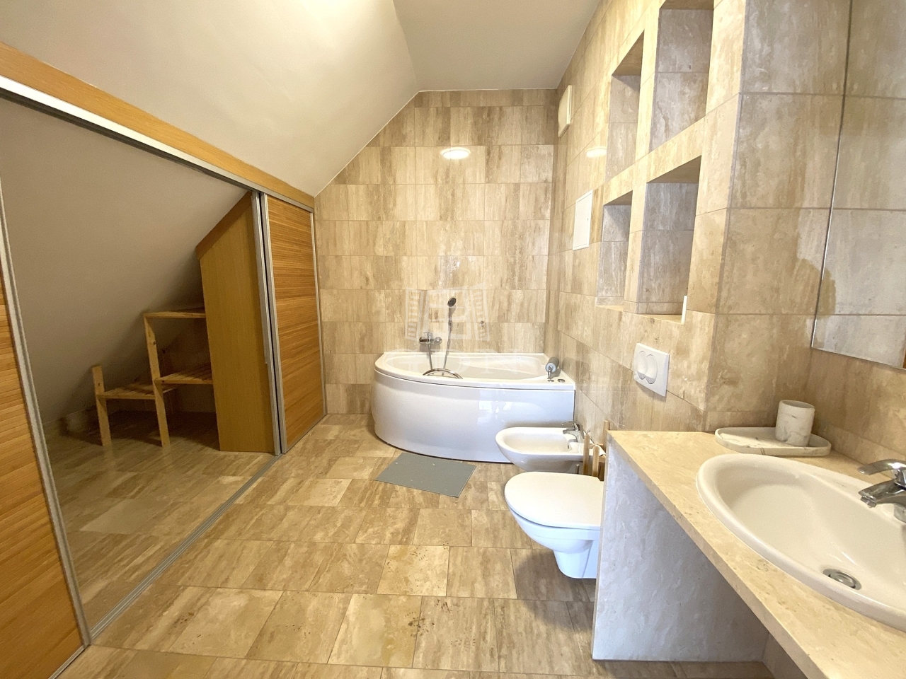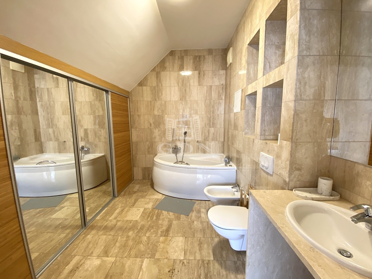 A lakás hatalmas, tágas terekkel rendelkezik, 2 nagy hálószoba, gardróbbal, saját fürdőszobákkal, beépített szekrényekkel.