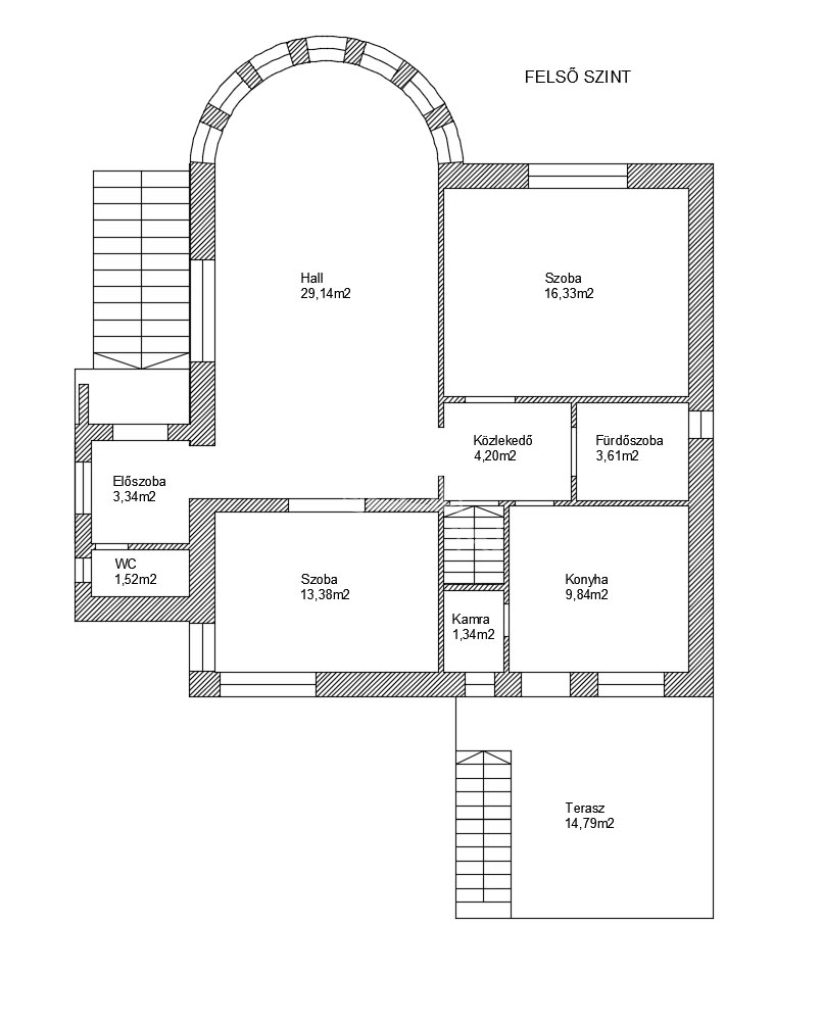 5 szoba, 2 konyha, 2 fürdőszoba, tágas hall és reprezentatív fogadóterek