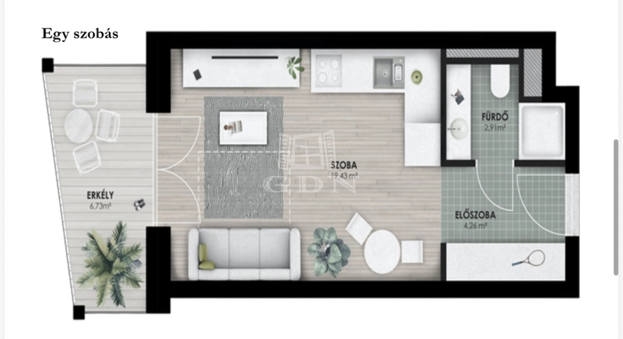 | 27 m2Alapterület | 1 Szoba |