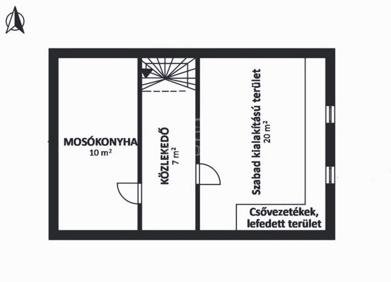 • Alsószint: mosókonyha, előtér, szoba („játszó- vagy wellness-rész”)