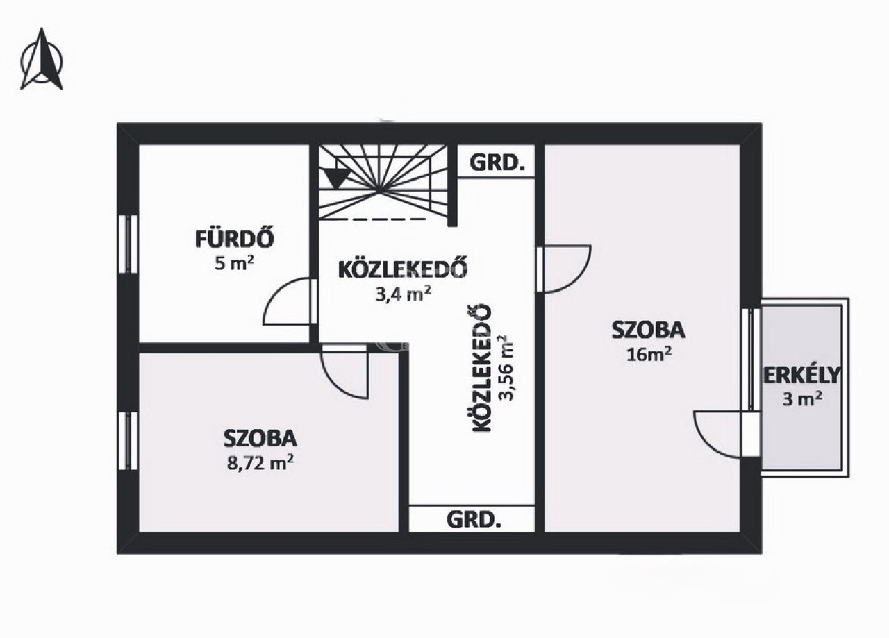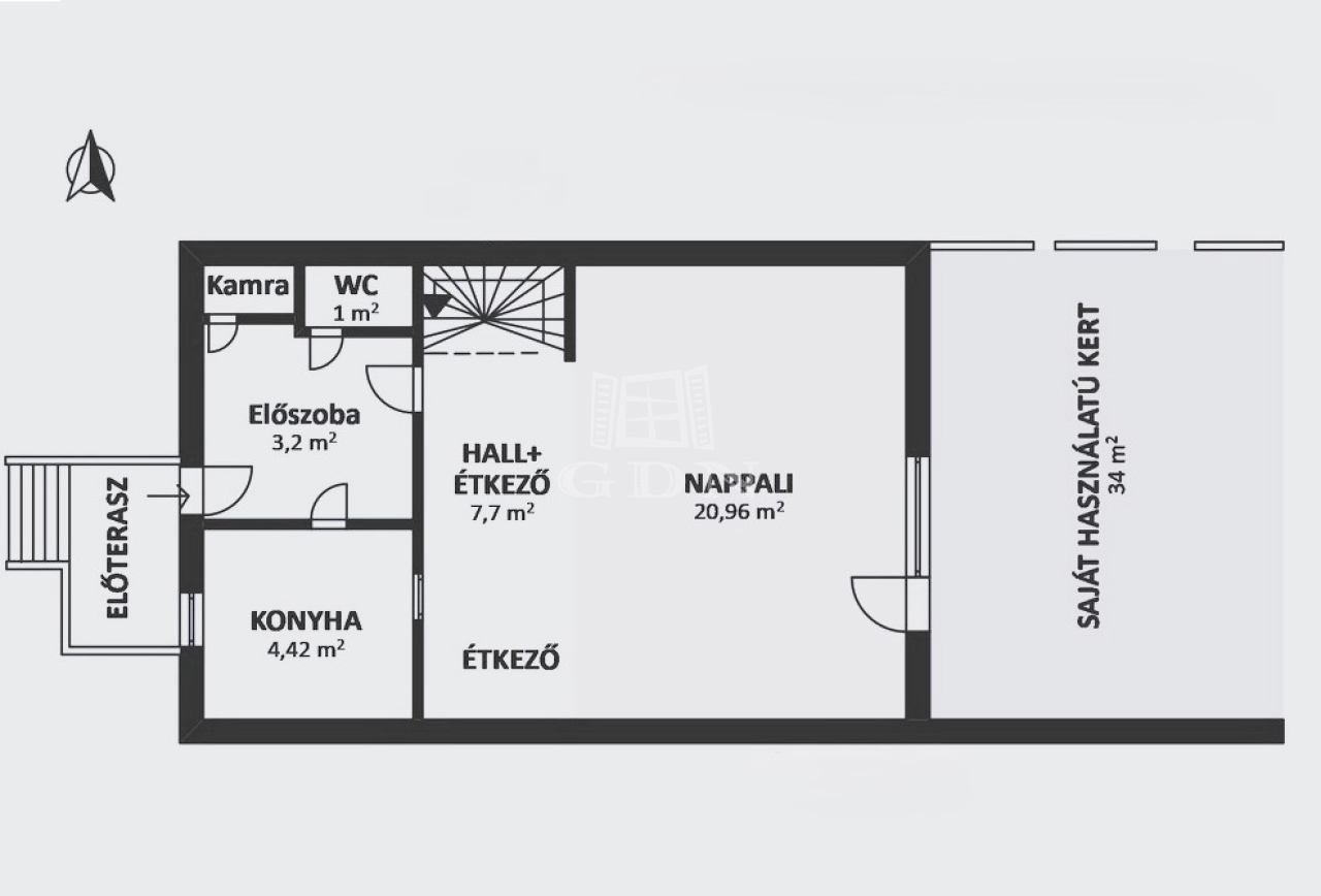 • Földszint: nappali, étkező, konyha, WC, előszoba, kamra + kertkapcsolat