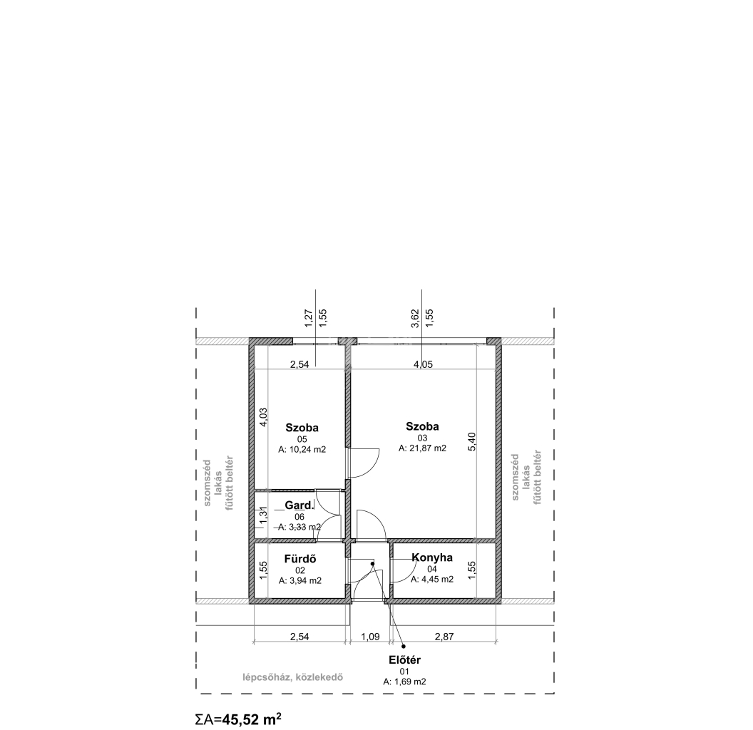 46 m2Alapterület 1 + 1 Szoba