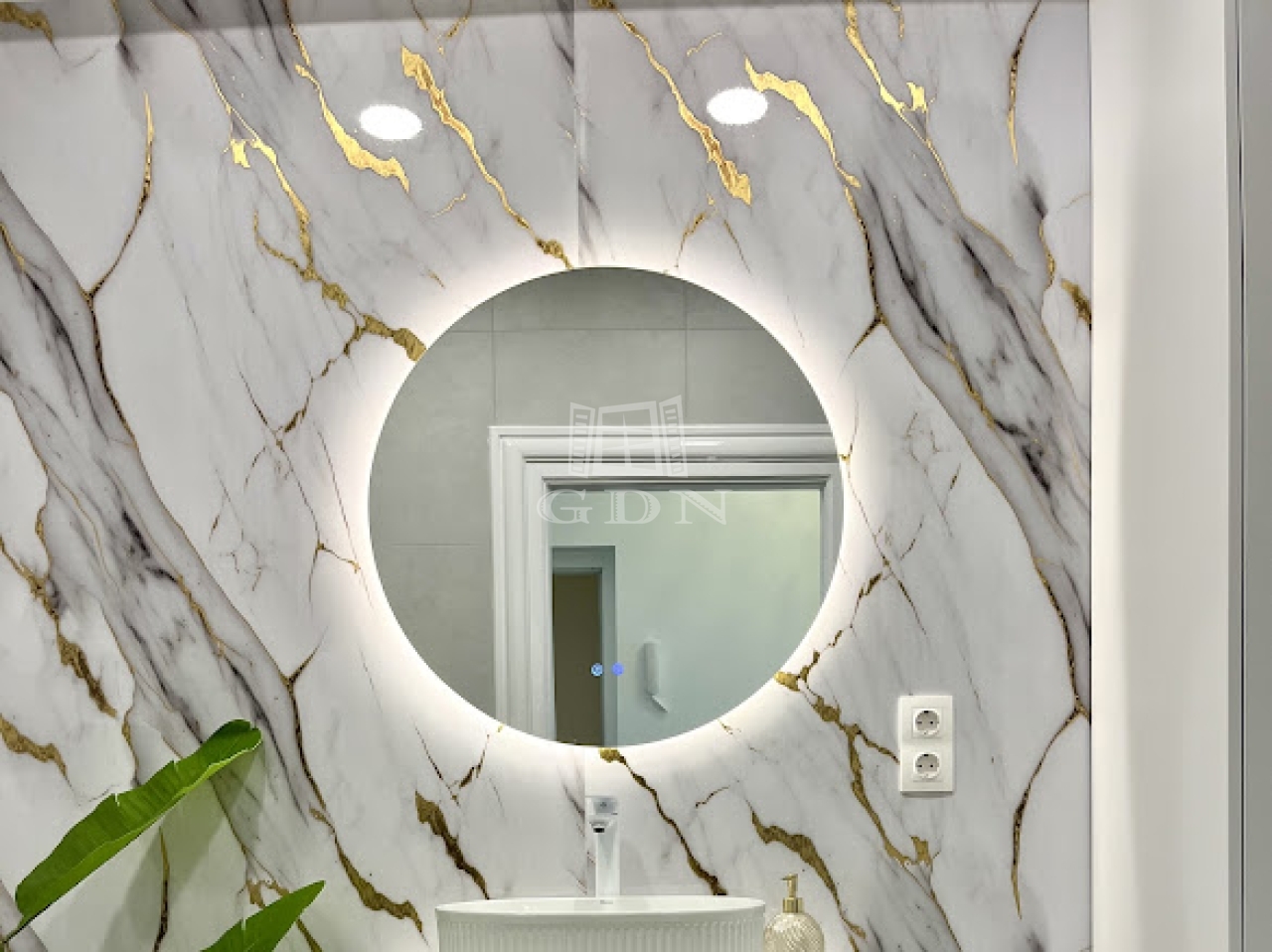 • Modern épített zuhanyzós fürdő, ízléses burkolatok