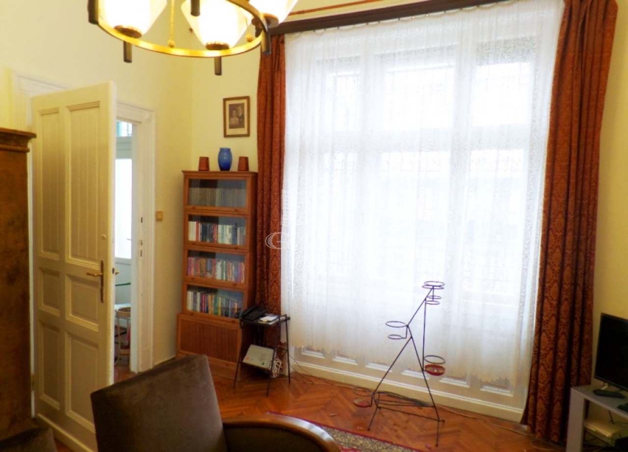 A belső UDVARI kilátású ingatlan egy RENDEZETT, liftes, téglaépítésű társasház, 4. emeletén helyezkedik el. A karbantartott lakás rendkívül tágas, VILÁGOS, jó állapotú, két éve volt tisztasági festés. Az ingatlan KLASSZIKUS polgári lakás kialakítású, belmagassága 3,4 méter. Fűtést cserépkályhába szerelt HÉRA működteti, meleg víz ellátását villanybojler biztosítja. HŰTŐ-FŰTŐ klíma is felszerelésre került. A padló fa parkettás, vizes helyiségek, konyha kerámia burkolatú. Külső és belső nyílászárók fából készültek, jó állapotúak. A műanyag BIZTONSÁGI bejárati ajtó hőszigetelt. KÖZÖS költség: 27.000,- Ft, amely a VÍZDÍJAT magába foglalja.