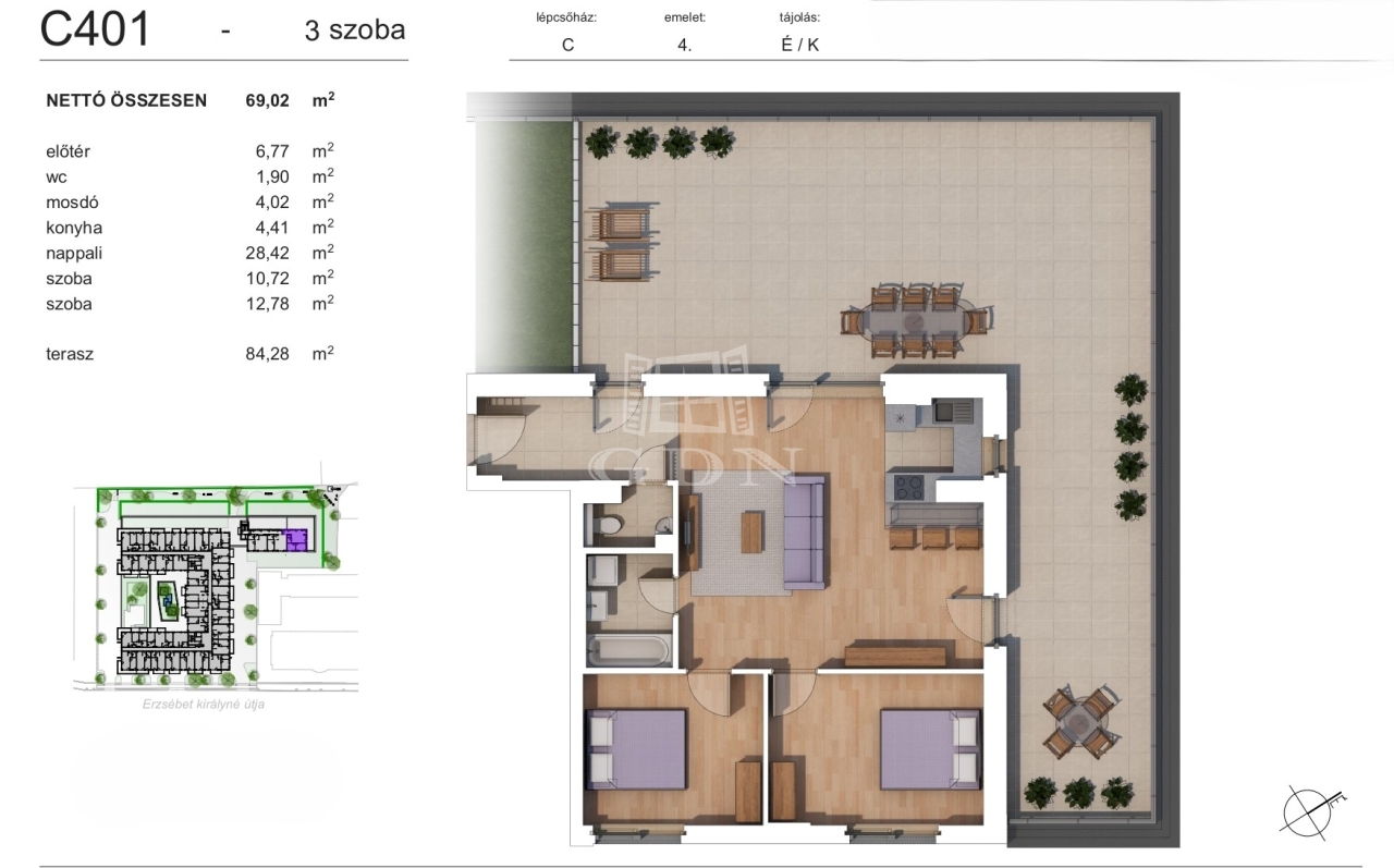| 69 m2Alapterület | 2 Szoba |