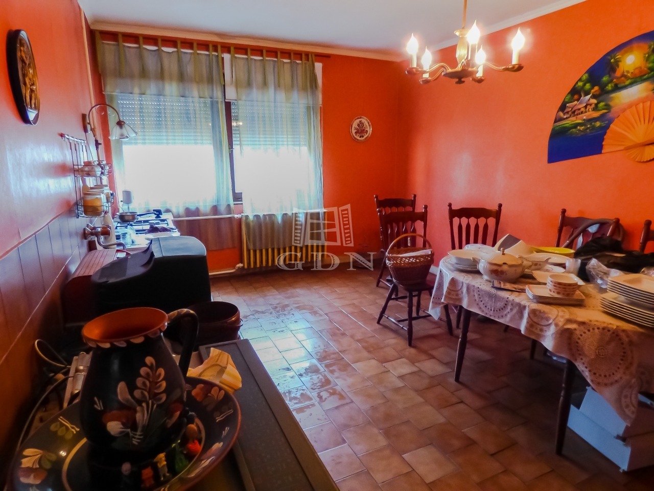 Az emeleti lakrészen, óriási nappali (ami akár 3 szobává alakítható), hálószoba, konyha, kamra, fürdőszoba lett kialakítva.