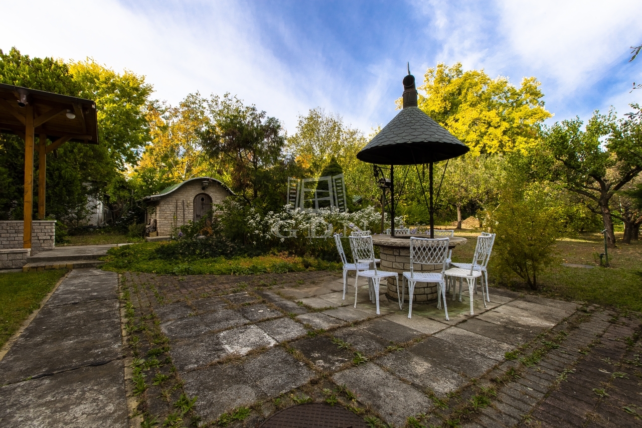 A kert rendezett és gondozott, folyton termő gyümölcsfákkal, szerszámtárolóval, valamint egy különálló, zöldség-gyümölcs tárolására alkalmas pincével.