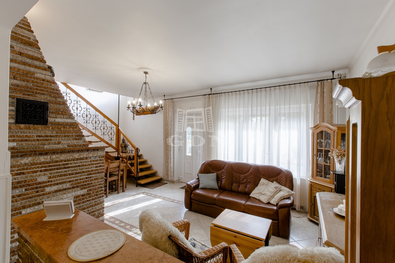 - Földszint: tágas nappali működő rusztikus kandallóval, étkező, konyha, fürdő, külön WC, műhely, garázs és pincelejáró.