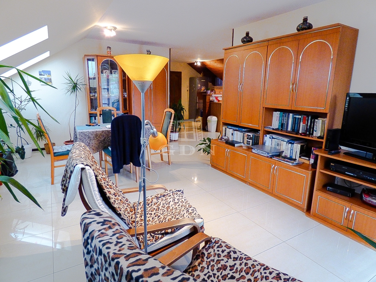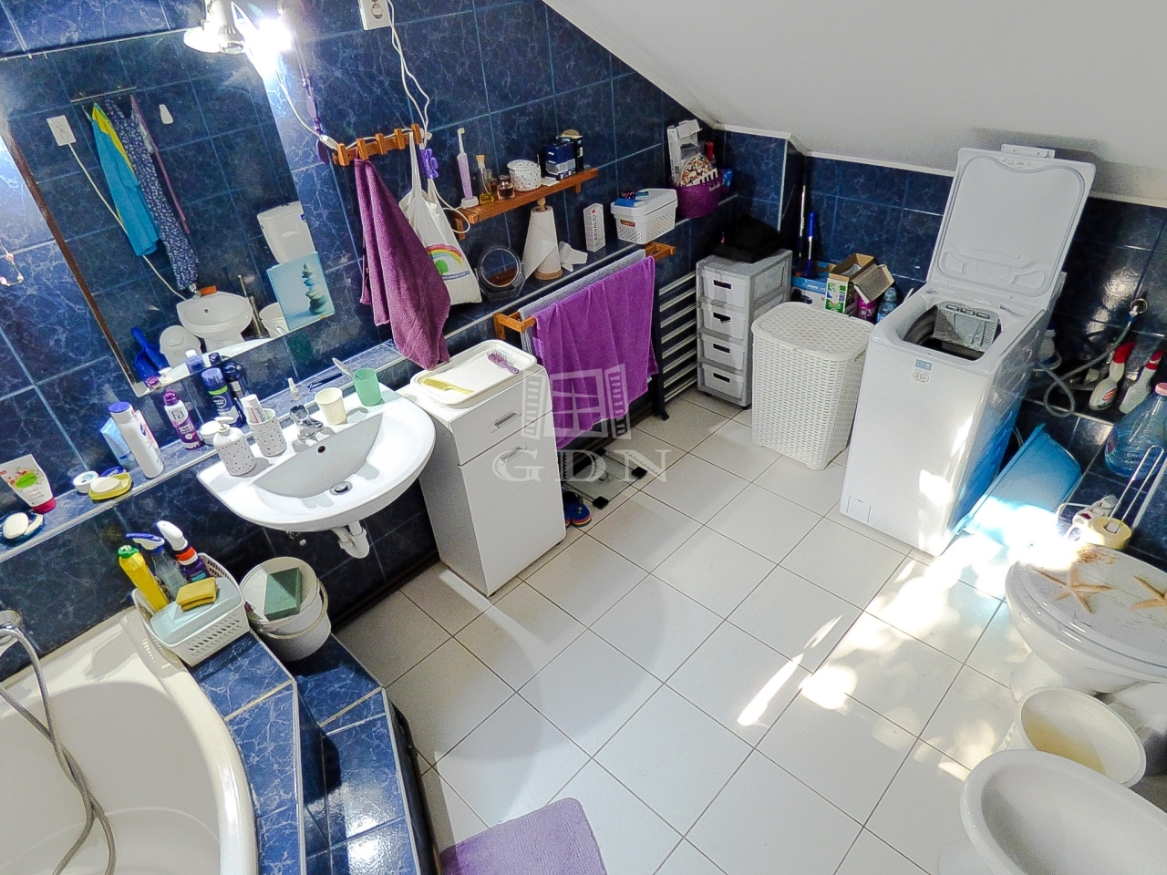 XVII. kerületben Rákoscsaba - Újtelep csendes, aszfaltozott utcájában, 3 lakásos, 1980-ban épült, szigetelt (5 cm dryvit) házban, 105 nm-es (Bruttó 145 nm), I. emeleti, 3 szobás, jó állapotú, gáz cirkó fűtéses (radiátoros hőleadással), fa thermo nyílászárós, alacsony fenntartási költségű, nagy teraszos (24 nm), KERTKAPCSOLATOS, rugalmasan birtokba vehető, TEHERMENTES házrész eladó.