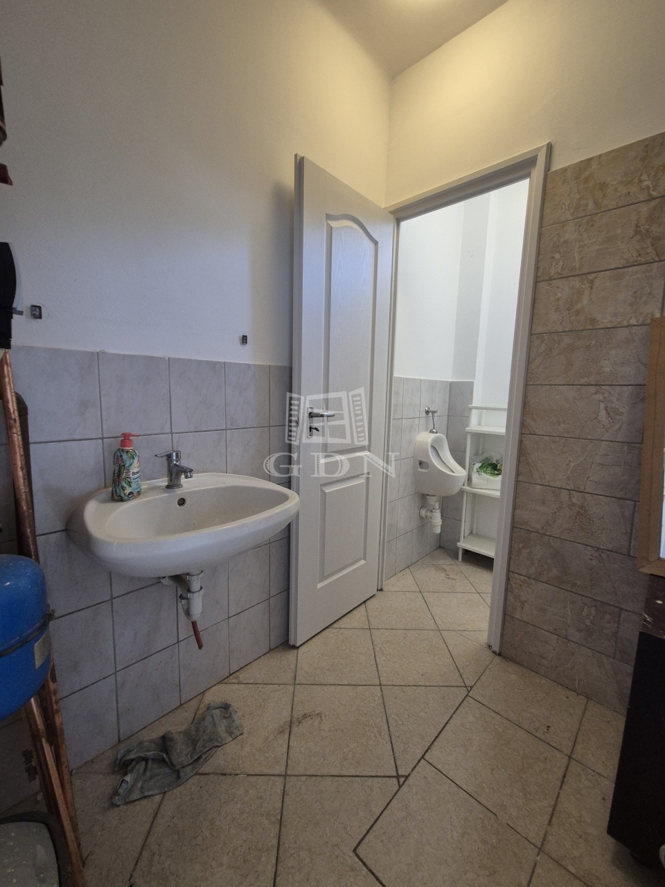 A nagy részben betonozott és térkövezett telken egy körbejárható, szigetelt, kifogástalan állapotú, korszerű gépészettel, konyhával, tárgyalóval, szobákkal és szociális helyiségekkel rendelkező, 200 m2 alapterületű épületet találunk.