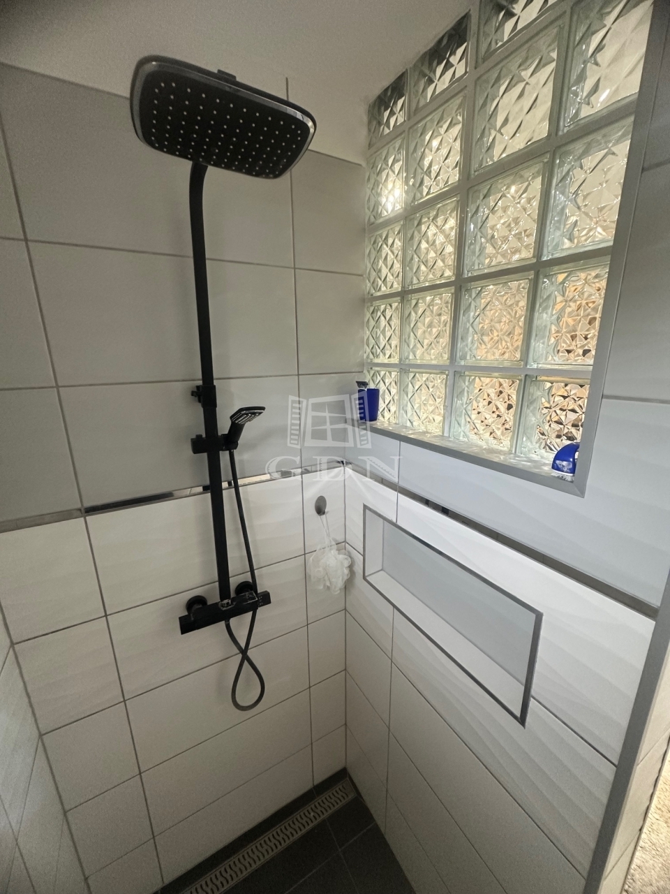 Mindkét szinten külön fürdőszoba található, saját bojlerrel, így a melegvíz-ellátás mindig zavartalan. A földszinti fürdőben kád és épített zuhanyzó is helyet kapott, míg az emeleten egy modern zuhanyzós kialakítás várja az ott lakókat.