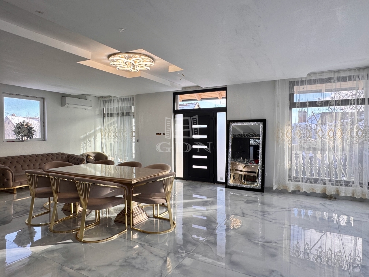 A ház ideális nagycsaládosoknak, de két generációnak is kényelmes tereket biztosít, a 214 m²-es lakótér, és az alsó szint helyiségei.