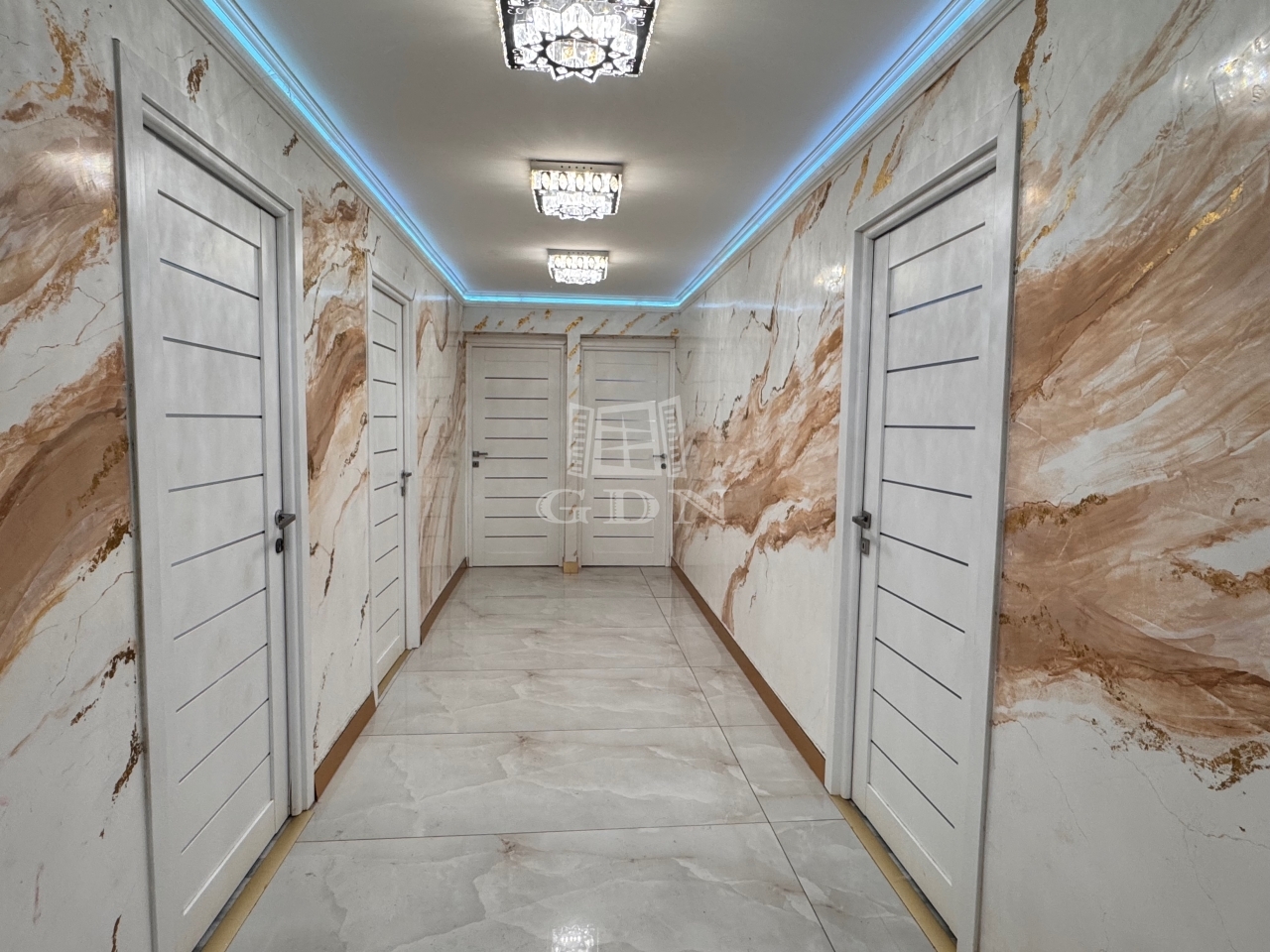 Széles folyosóról nyílnak a gyerek szobák, a nagy kádas fürdőszoba, és két nagy méretű hálószoba saját gardrób helyiségekkel.