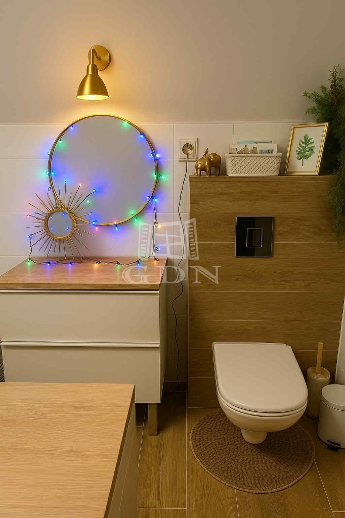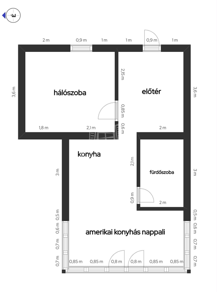 A földszinten helyezkedik el az amerikai konyhás nappali étkezővel, egy hálószoba, egy dolgozóként kialakított előszoba, valamint a kádas fürdőszoba. Az emeleten egy vendégszoba kapott helyet.