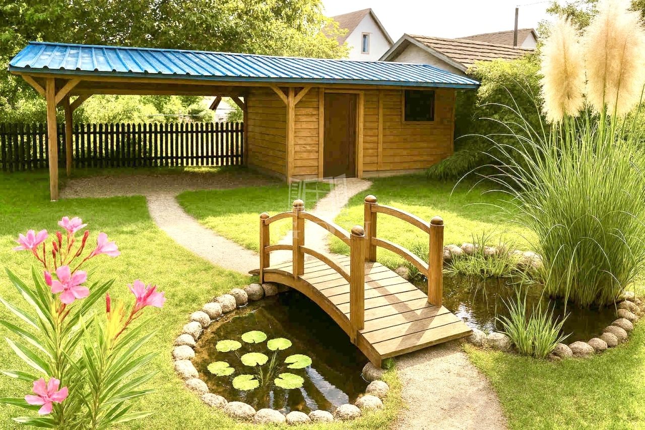 A kert nagysága közel 300 m², amely remek lehetőséget nyújt kertészkedésre vagy akár egy medence kialakítására. A gondozott udvarban egy dizájnos kerti tó, egy 16 m²-es fedett autóbeálló, valamint a hozzá kapcsolódó 9 m²-es tároló, továbbá kút is található. A házhoz két terasz kapcsolódik (2 m² és 7 m²), ahonnan közvetlen kilátás nyílik a Dunára.