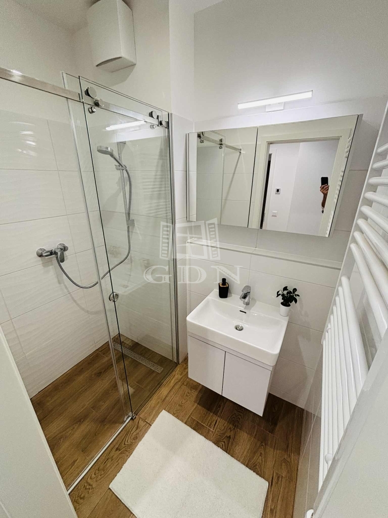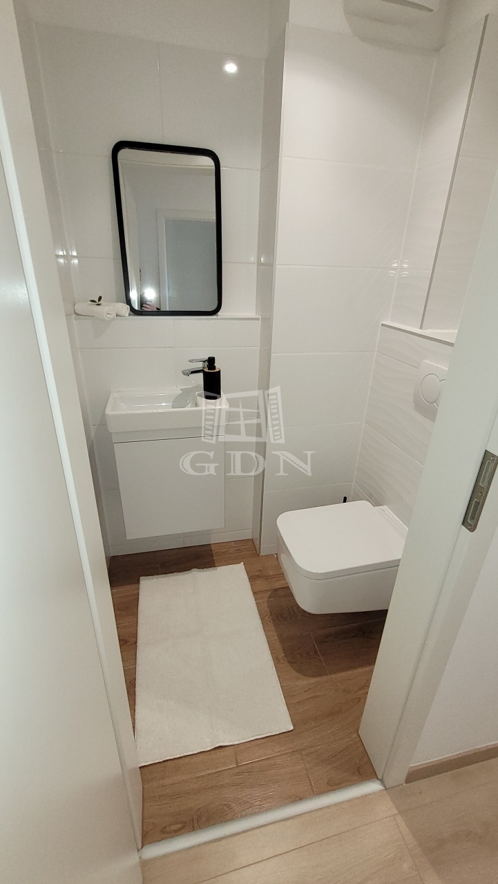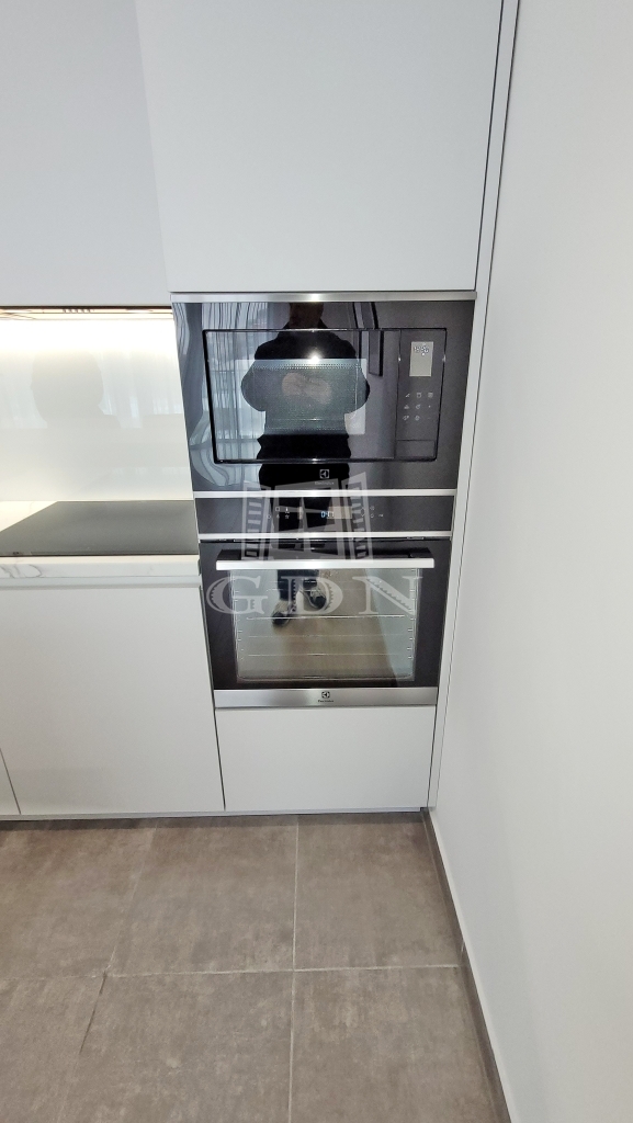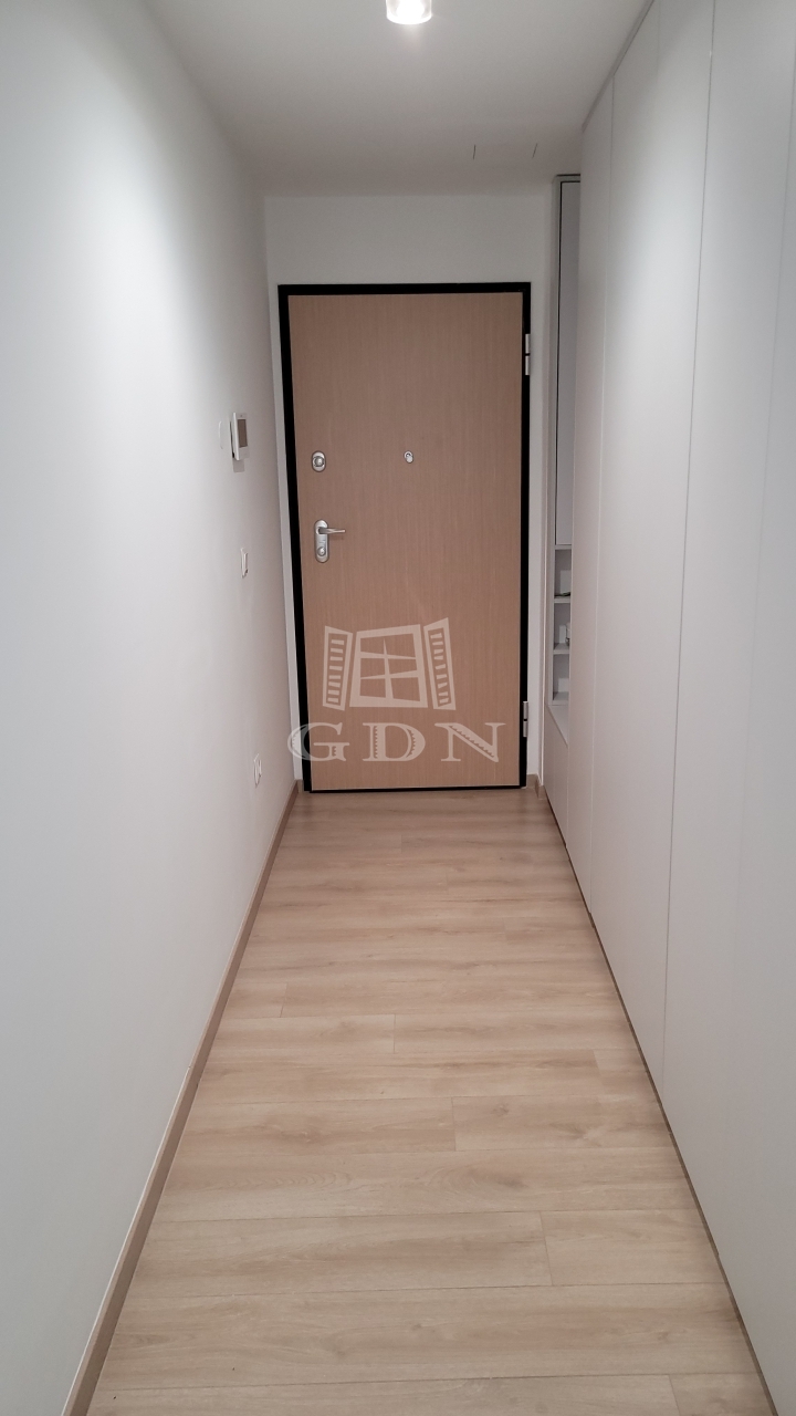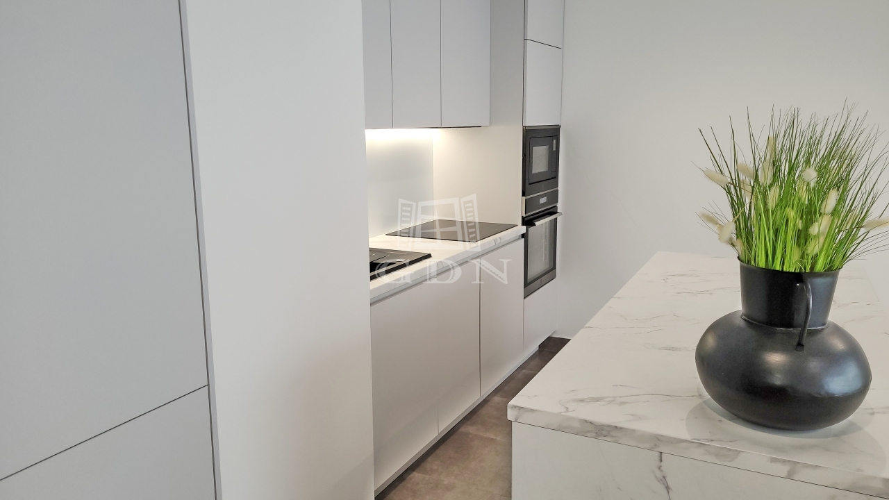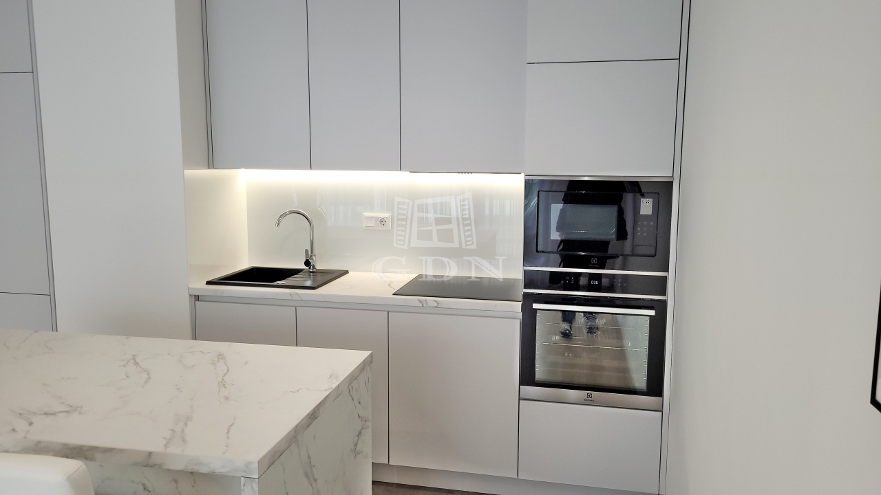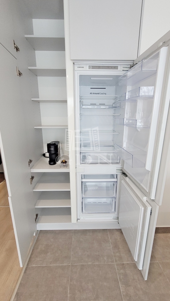 Beépített előszoba, - fürdőszoba (mosógéppel) és konyhabútorral, plusz gépek (sütő, főzőlap, mikrohullámú sütő, szagelszívó, hűtőgép és fagyasztó. Konyha sziget.