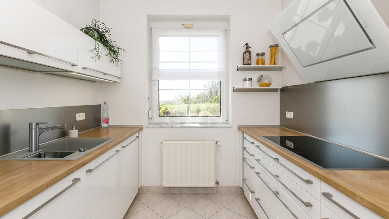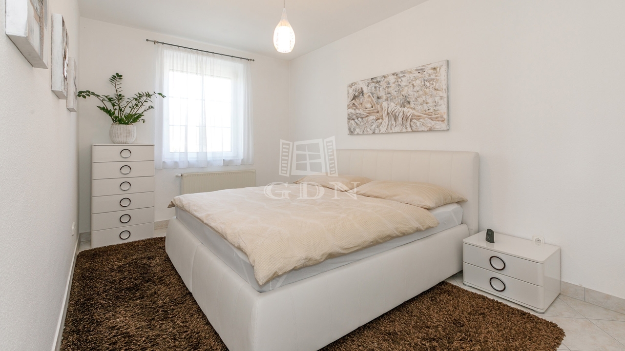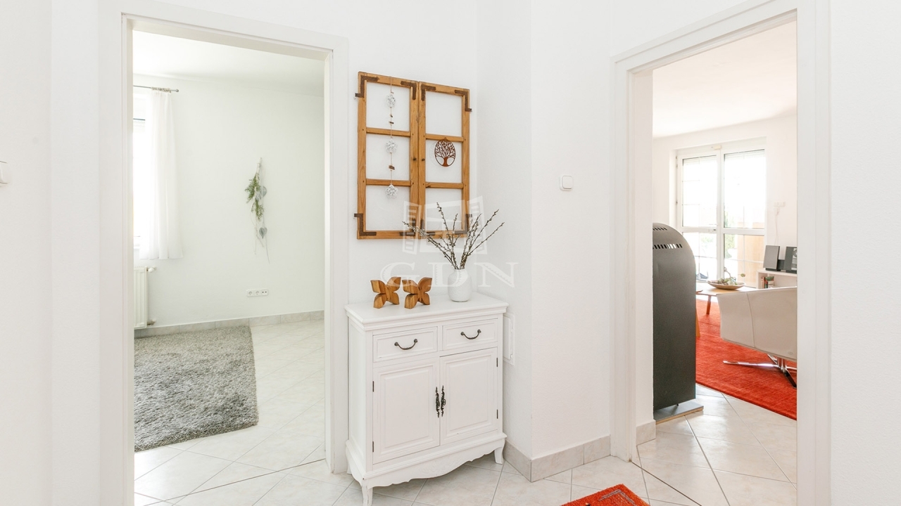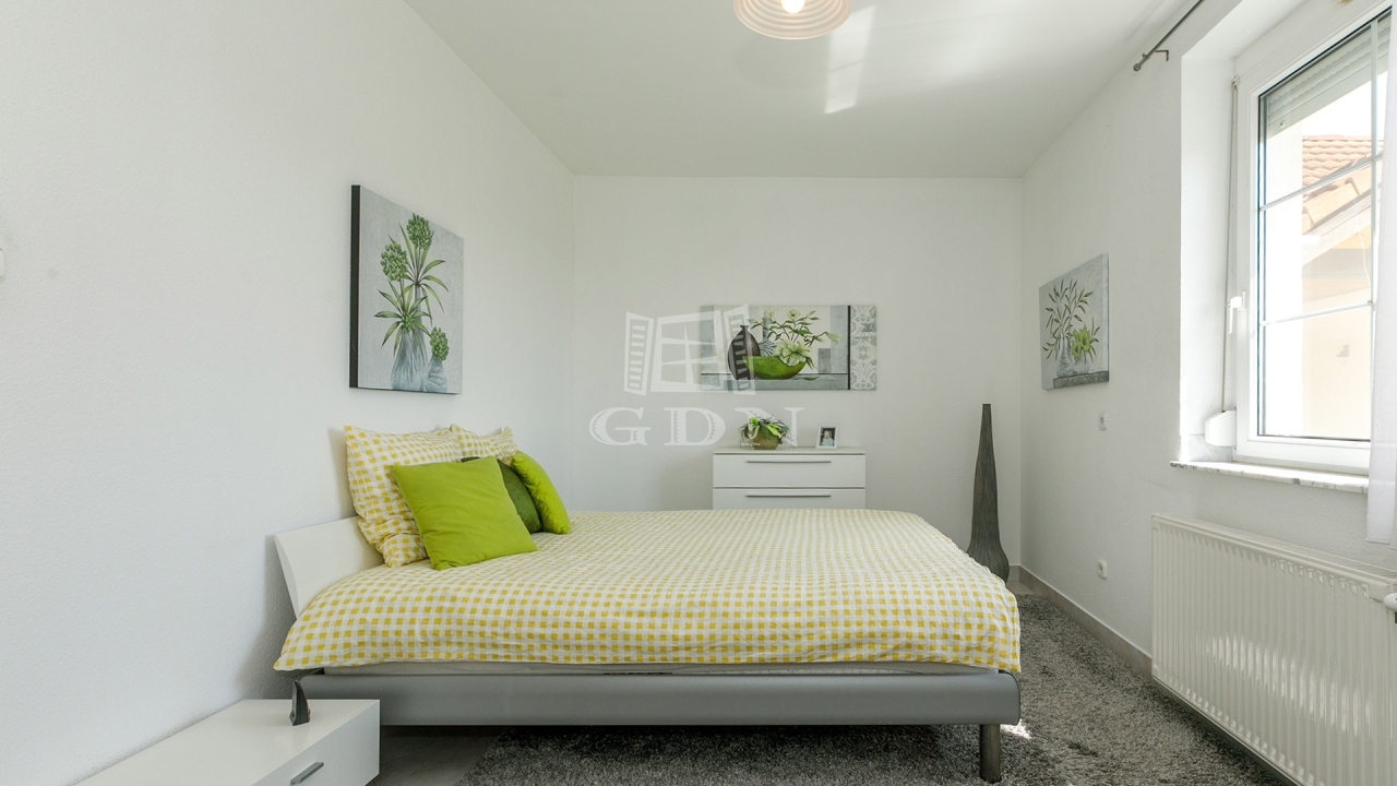 Földszint: előtér, tágas nappali-étkező, konyha, nagy háztartási helyiség, fürdőszoba, 2 szoba, vendég-WC.
