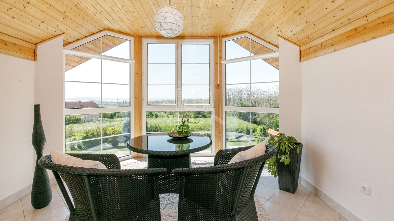 Eladó Cserszegtomajon ez a 335 m²-es, 2000-ben épült családi ház, kiváló állapotban. A lakóházból és a teraszról gyönyörű panoráma nyílik a Balaton irányába.