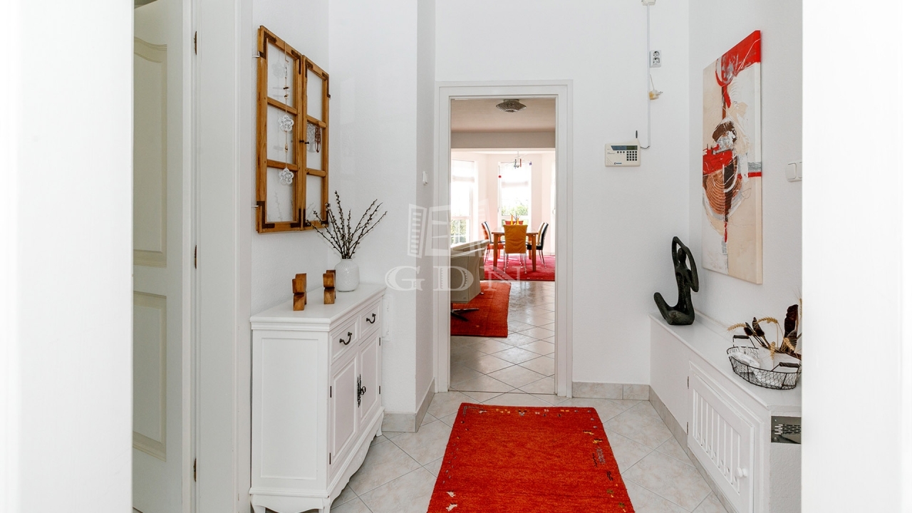 Az ingatlan egy 2347 m²-es telken helyezkedik el, ahol található még egy fedett szabadtéri medence, egy garázs, egy nagyobb műhely és egy pavilon is.