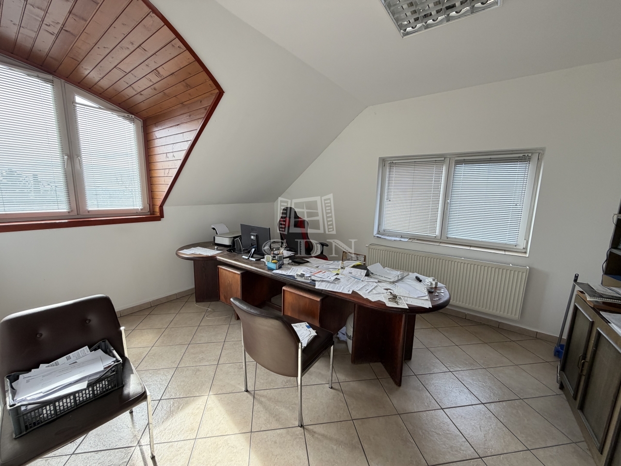 A földszinten a különböző helyiségekhez kapcsolódó kisebb irodák és személyzeti helyiségek találhatók, míg a tetőtérben igény esetén két "különálló/leválasztató-szeparálható" -de igény esetén mégis átjárható irodablokk kapott helyet.