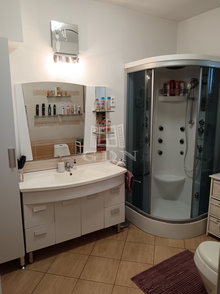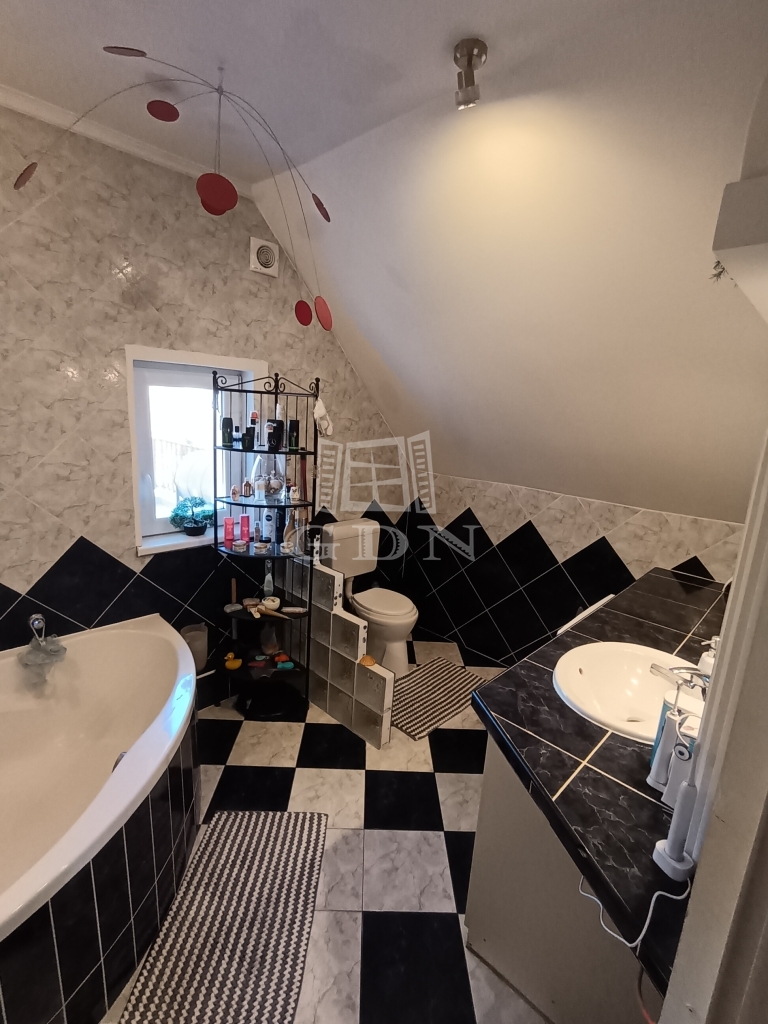 Az emeleten két tágas hálószoba, egy sarokkádas fürdőszoba, valamint egy világos nappali fogad.
