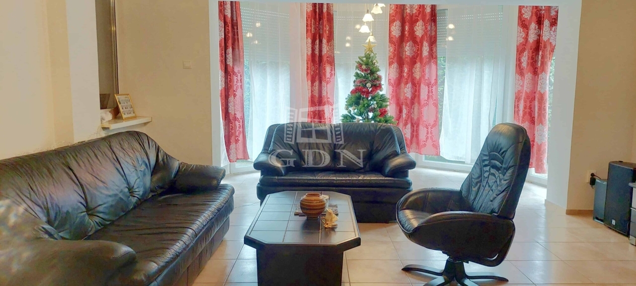 A földszinten tágas előszoba, nappali, két hálószoba, WC, fürdőszoba, gardrób, háztartási helyiség, étkező, konyha, kamra és egy grillezőterasz található.