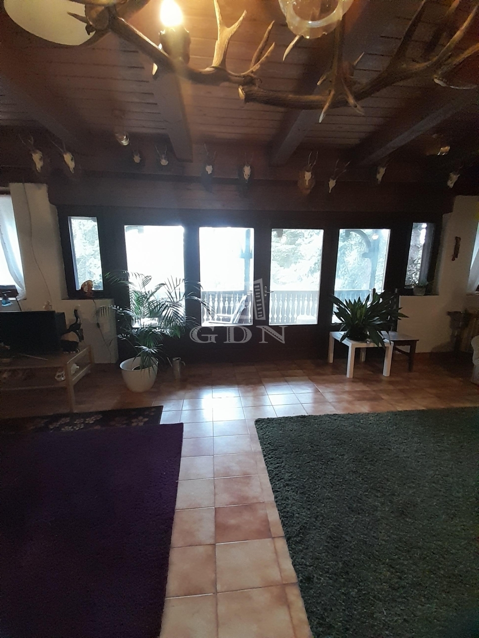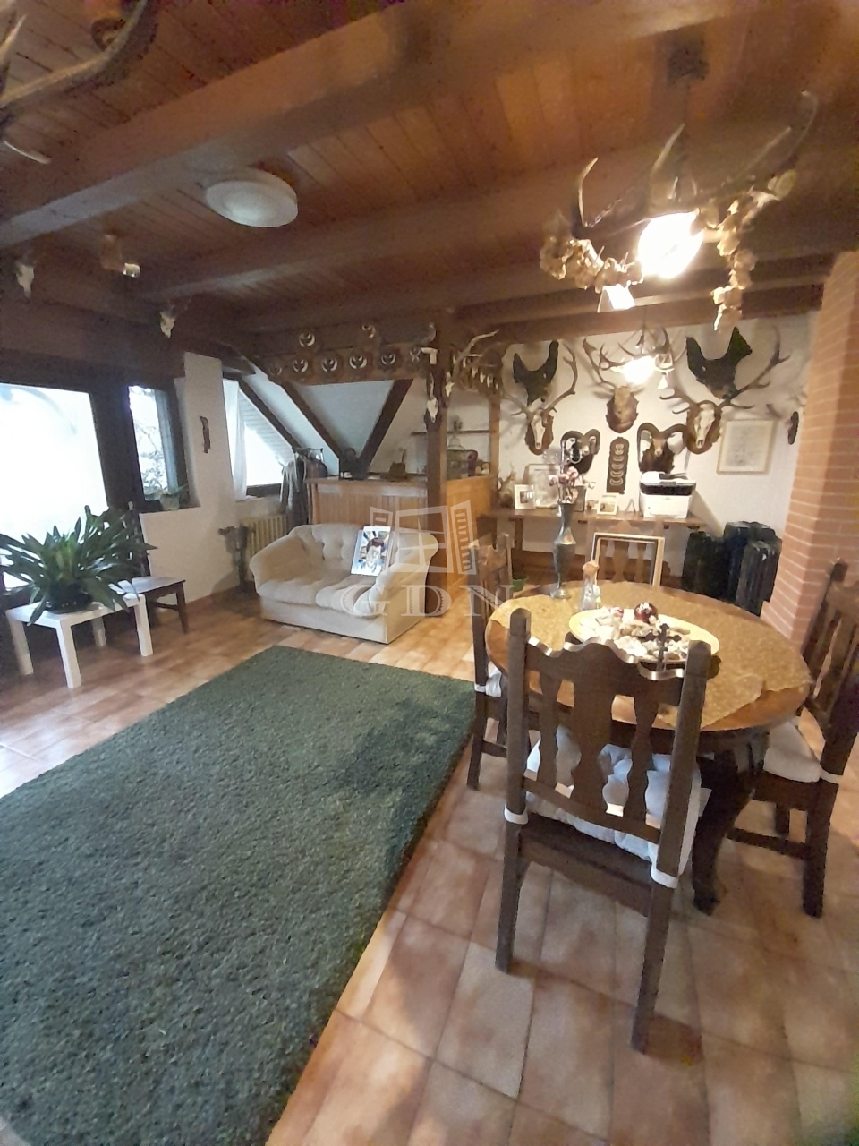 Maga a telek gyönyörű, rendezett, hatalmas fenyőkkel, dísznövényzettel telepített.